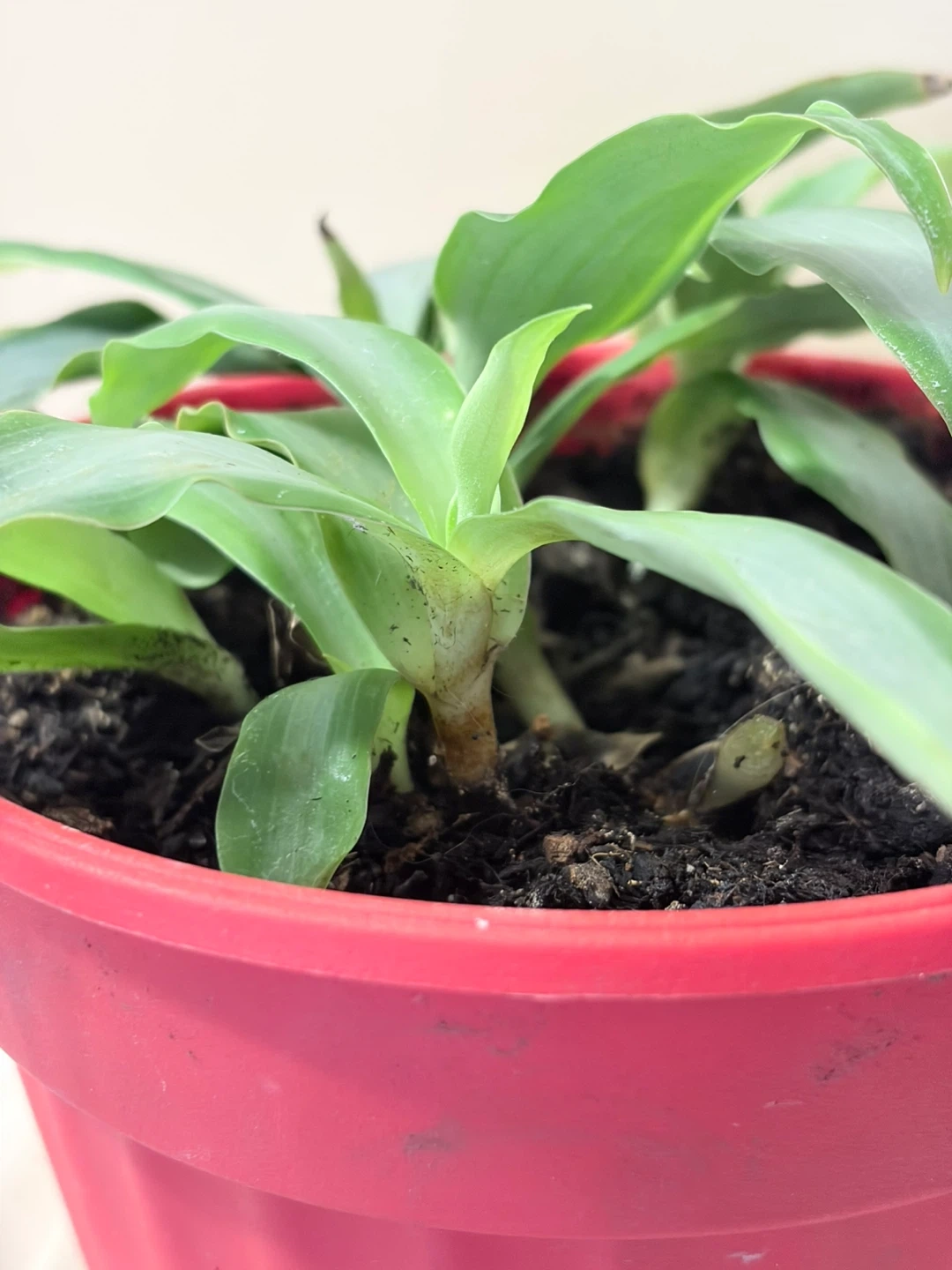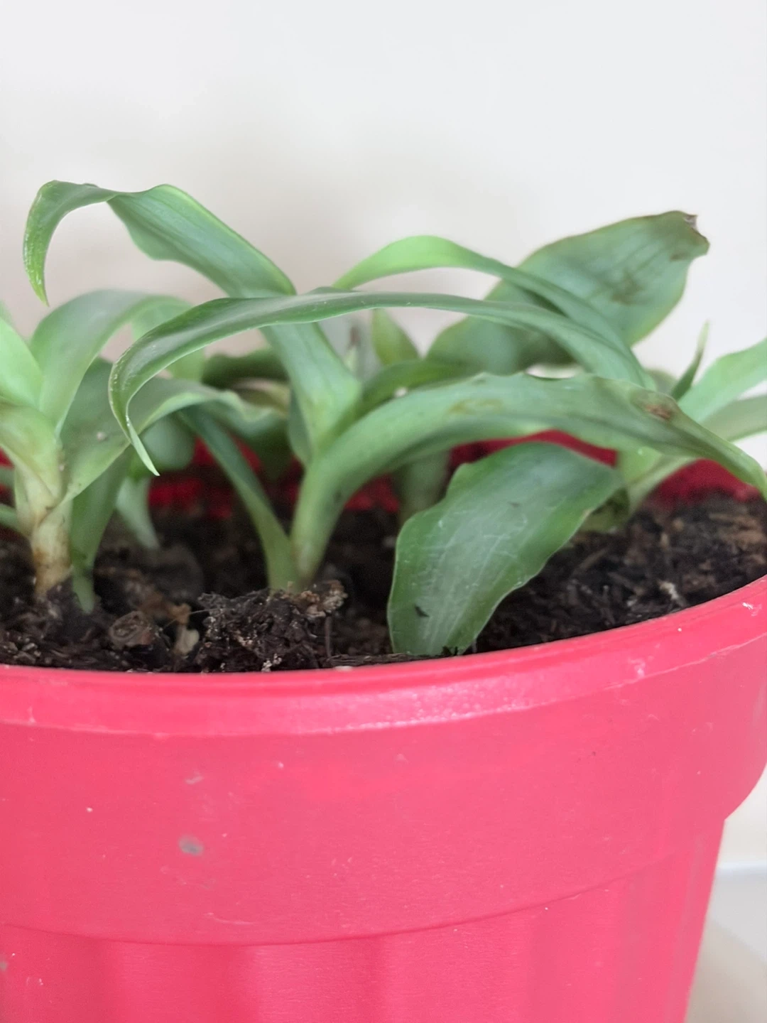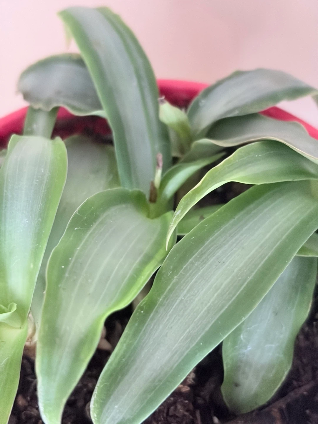 Possibly an Earth Star in a red plastic pot with a clear saucer. I’ve had it for over 2 years now, transplanted last August. This is as big as it has ever been. No bugs. Selling because I simply have too many plants. It's a nice addition to any indoor space! Pot measures approximately 6 inches tall.