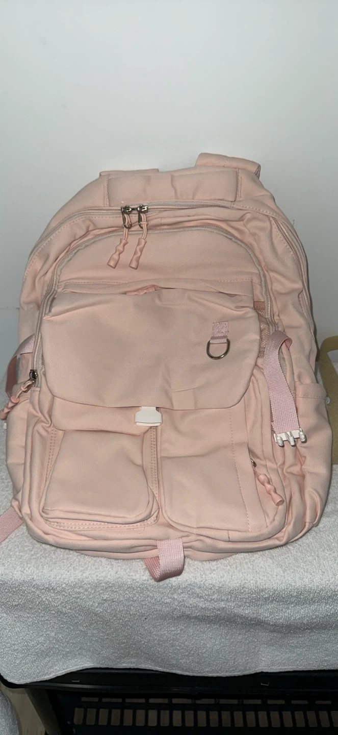 Pink Backpack with Multiple Pockets