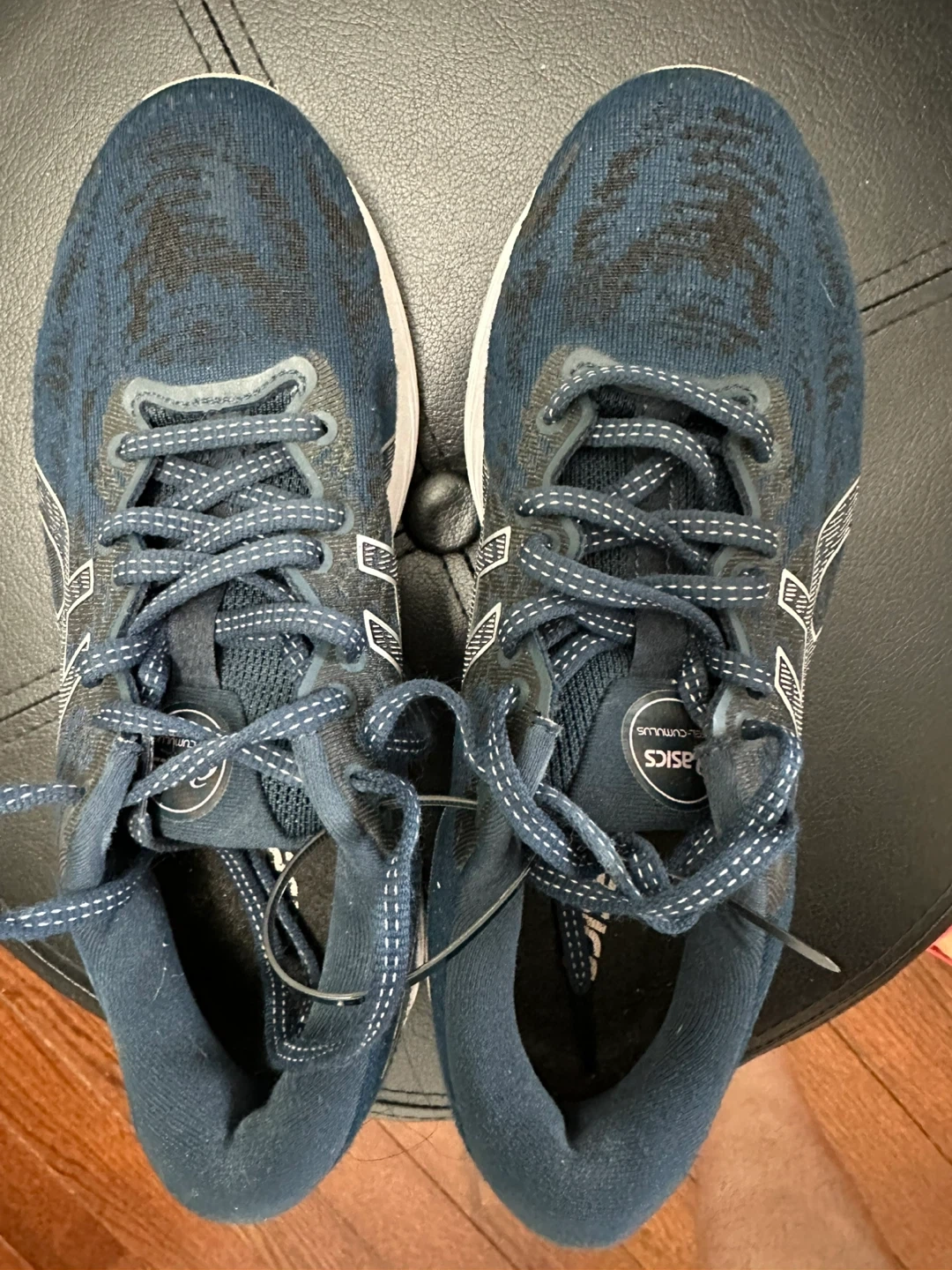 These navy blue Asics Gel-Cumulus 23 running shoes are in good condition. They feature a breathable mesh upper and FlyteFoam cushioning. Great for daily runs or training!