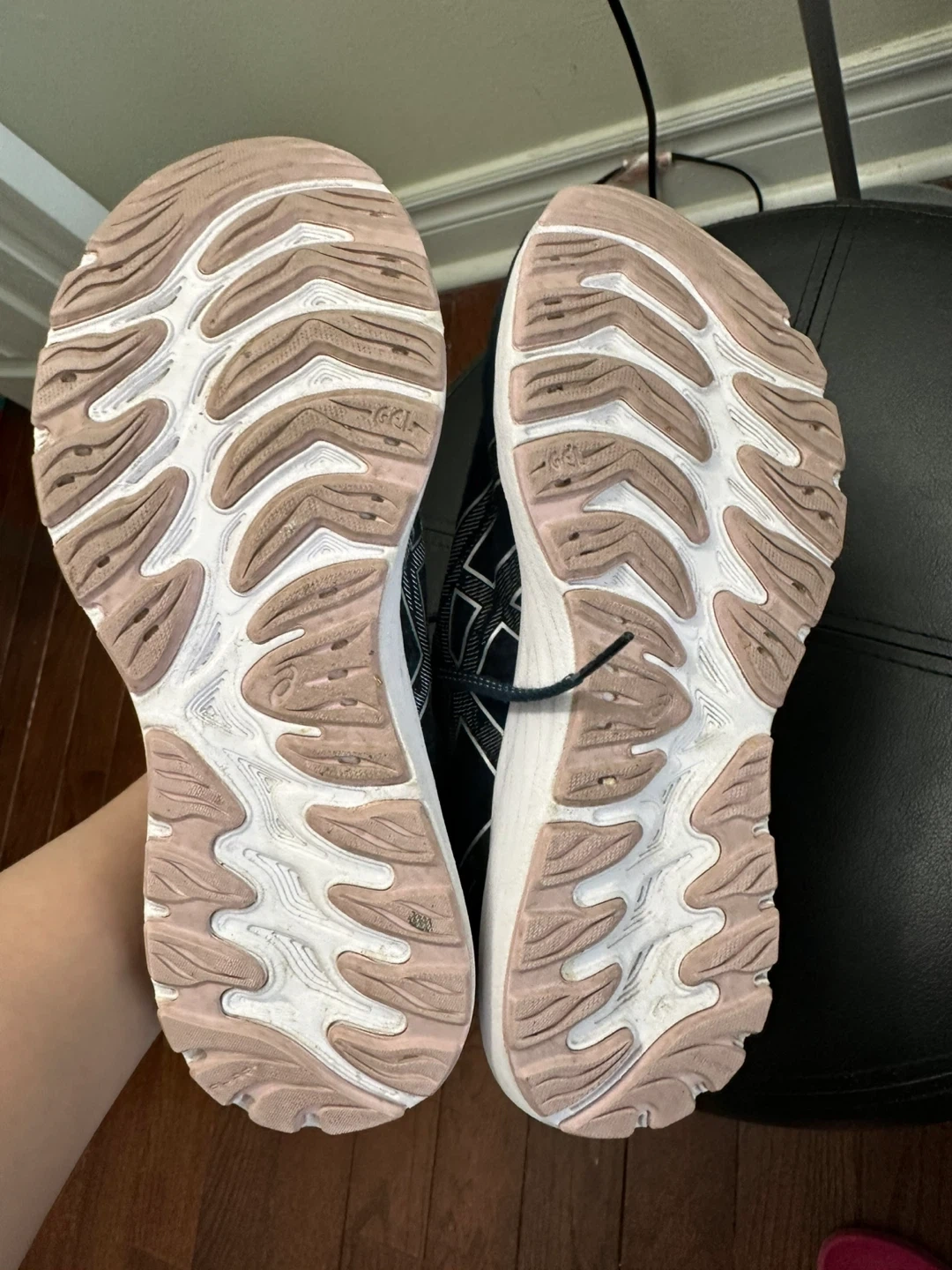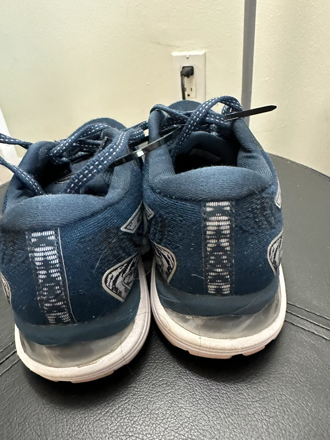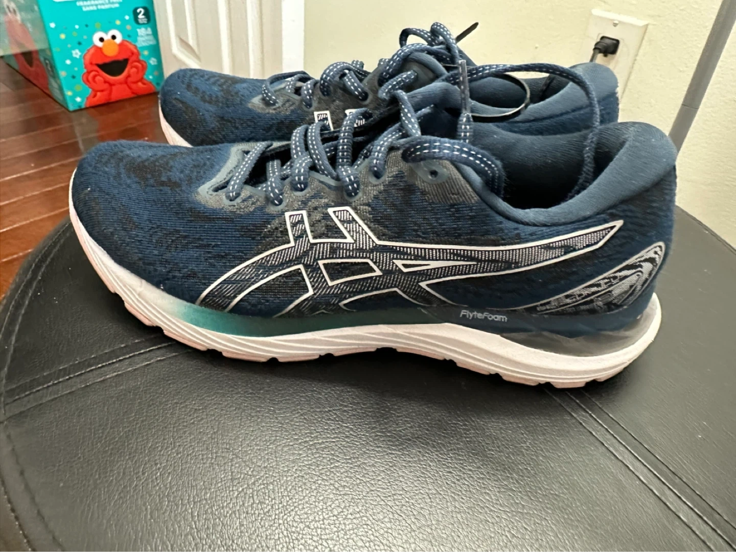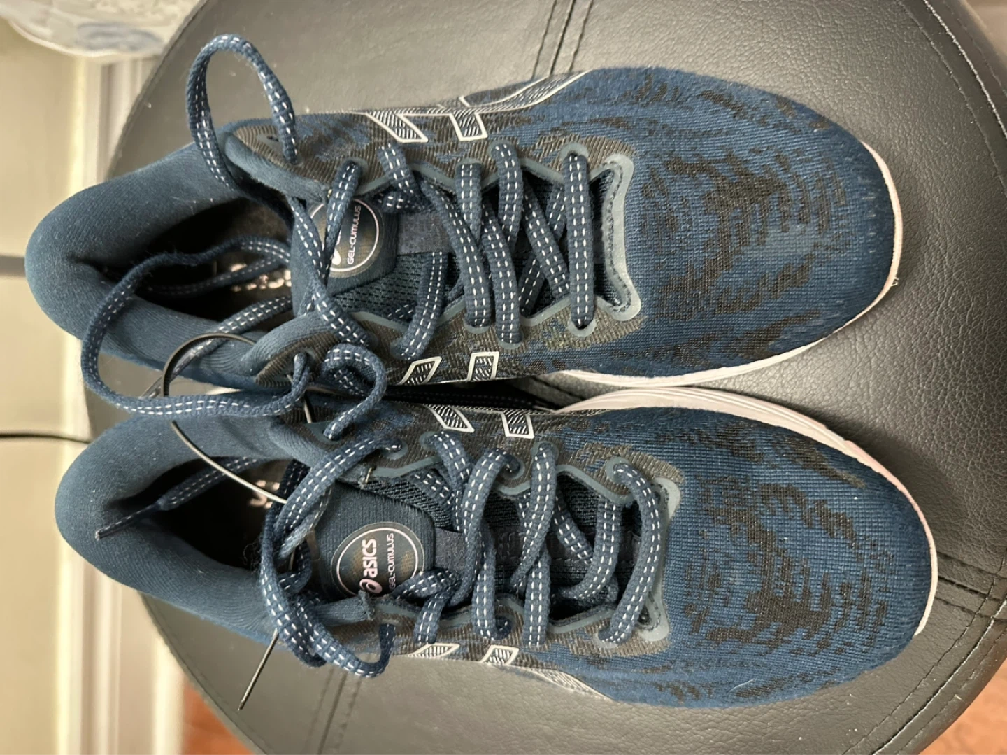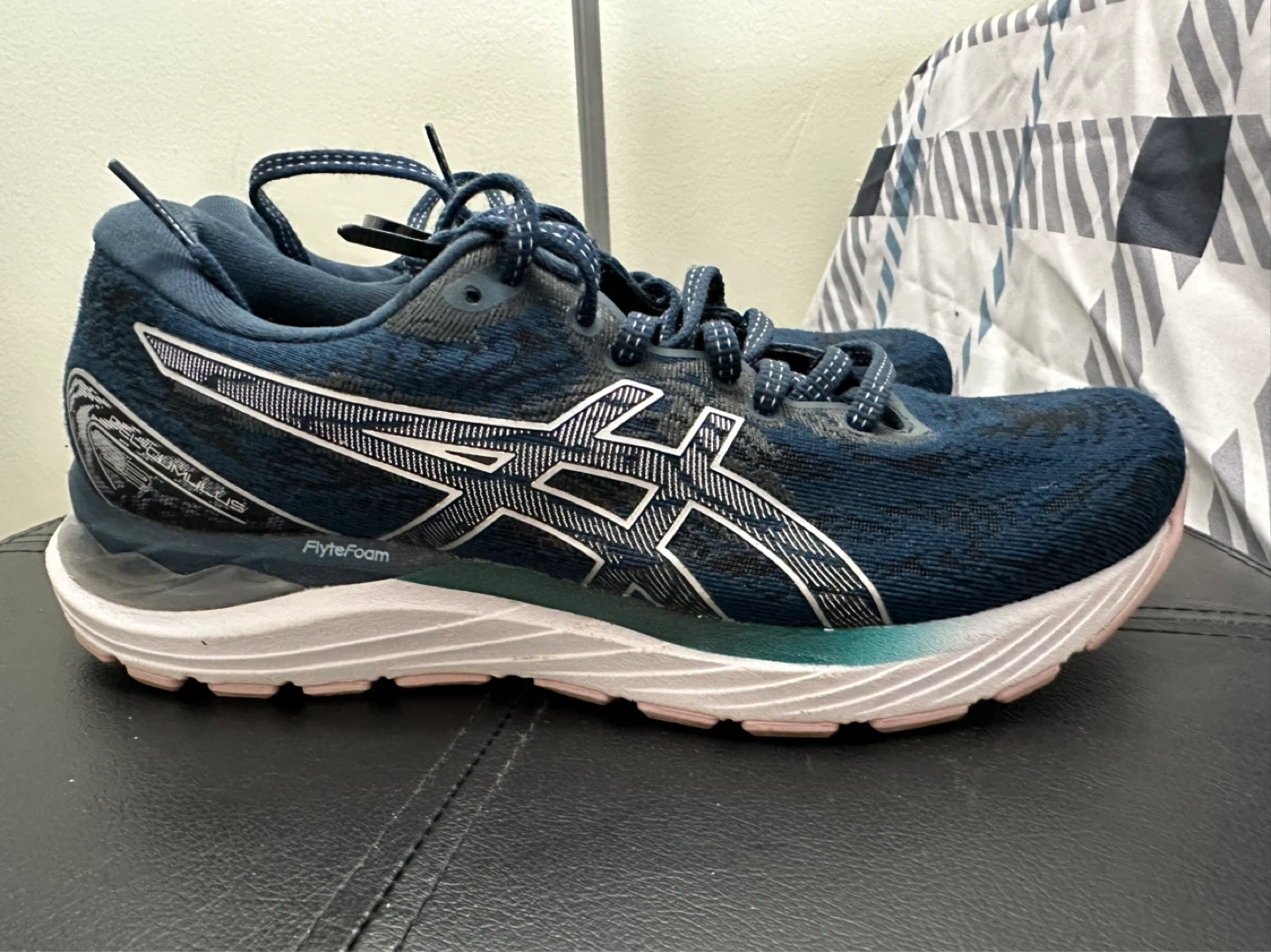 These navy blue Asics Gel-Cumulus 23 running shoes are in good condition. They feature a breathable mesh upper and FlyteFoam cushioning. Great for daily runs or training!