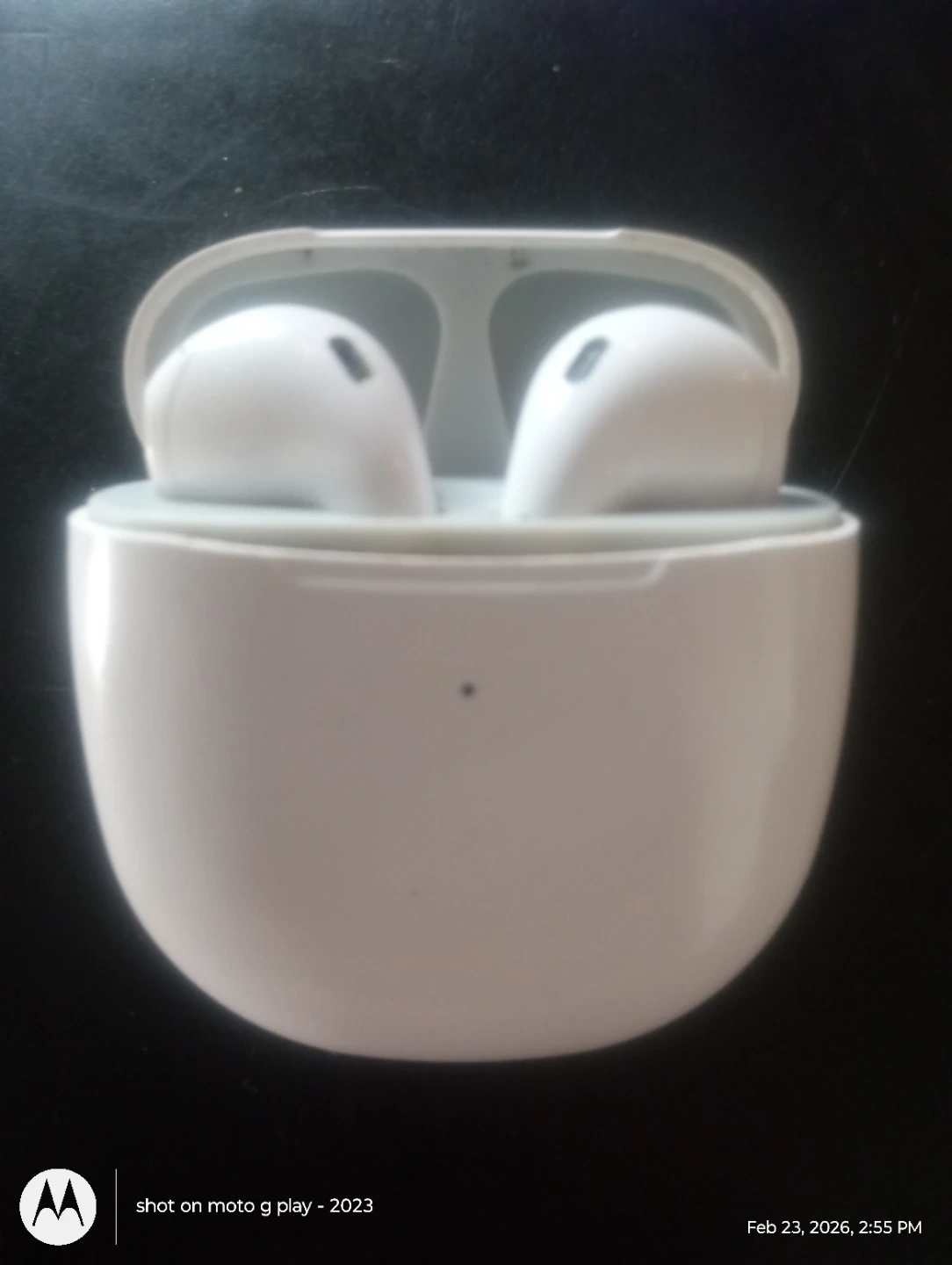 White Wireless Earbuds with Charging Case and Cable