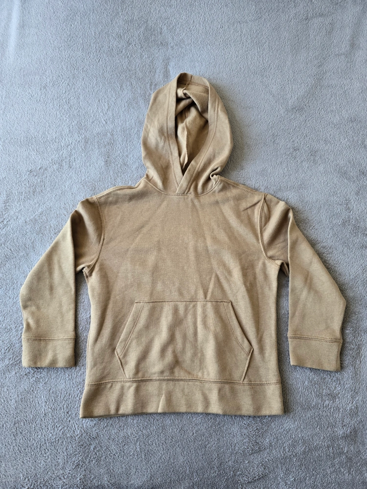 A cozy Old Navy hoodie for kids in size M (8)! It's a nice neutral colour. Perfect for layering or wearing on its own. Great for keeping warm on cooler days!