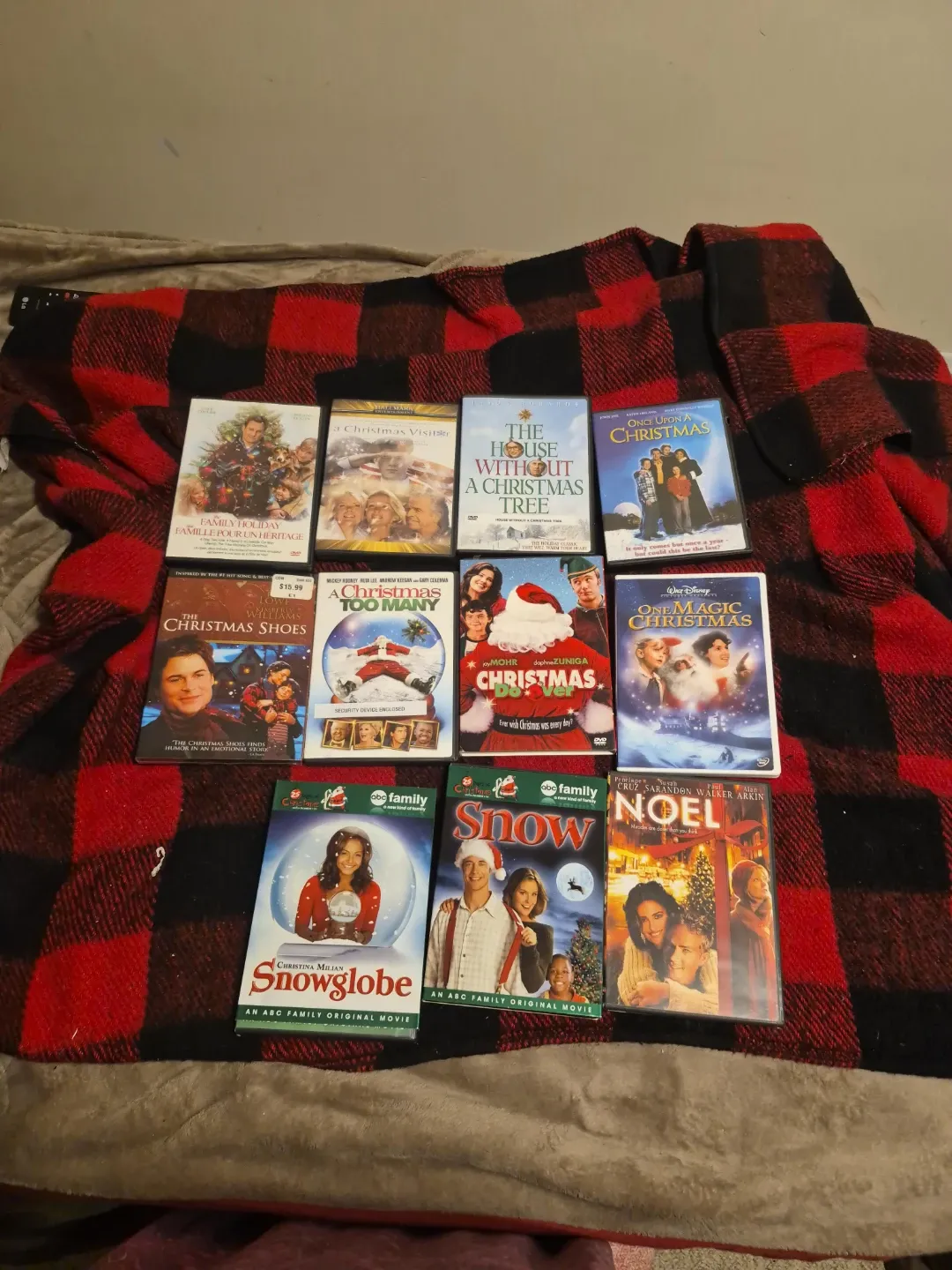 This lot includes ten Christmas-themed DVDs. Movies featured are Family Holiday, A Christmas Visitor, The House Without a Christmas Tree, Once Upon a Christmas, The Christmas Shoes, A Christmas Too Many, Christmas Do-Over, One Magic Christmas, Snowglobe, and Noel. These are all ABC Family Original Movies or similar holiday films.