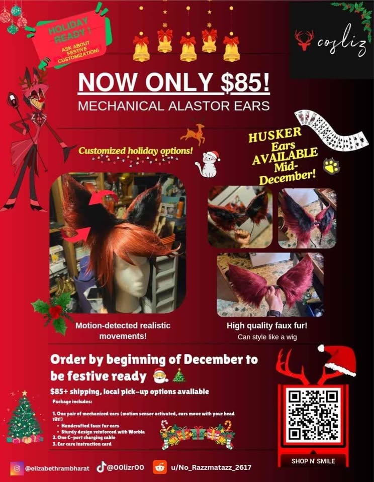 Handcrafted faux fur ears attached onto a motorized headband for realistic ear movements. Comes with a C-port charging cord and has two modes of motion detected movement (slow twitch and faster twitch, see video). Wig not included. I happen to be making more of these for the summer promo, so message if interested and I can reserve an order before September :) Willing to pick up (Bathurst and Wilson), if you're in the area.