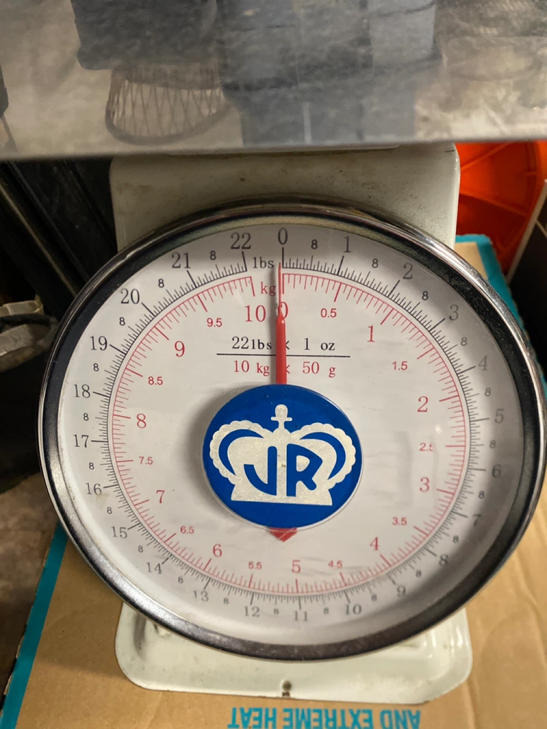 Selling a JR kitchen scale in good working condition! It can measure up to 22 pounds or 10 kilograms. Great for baking or portioning ingredients in the kitchen