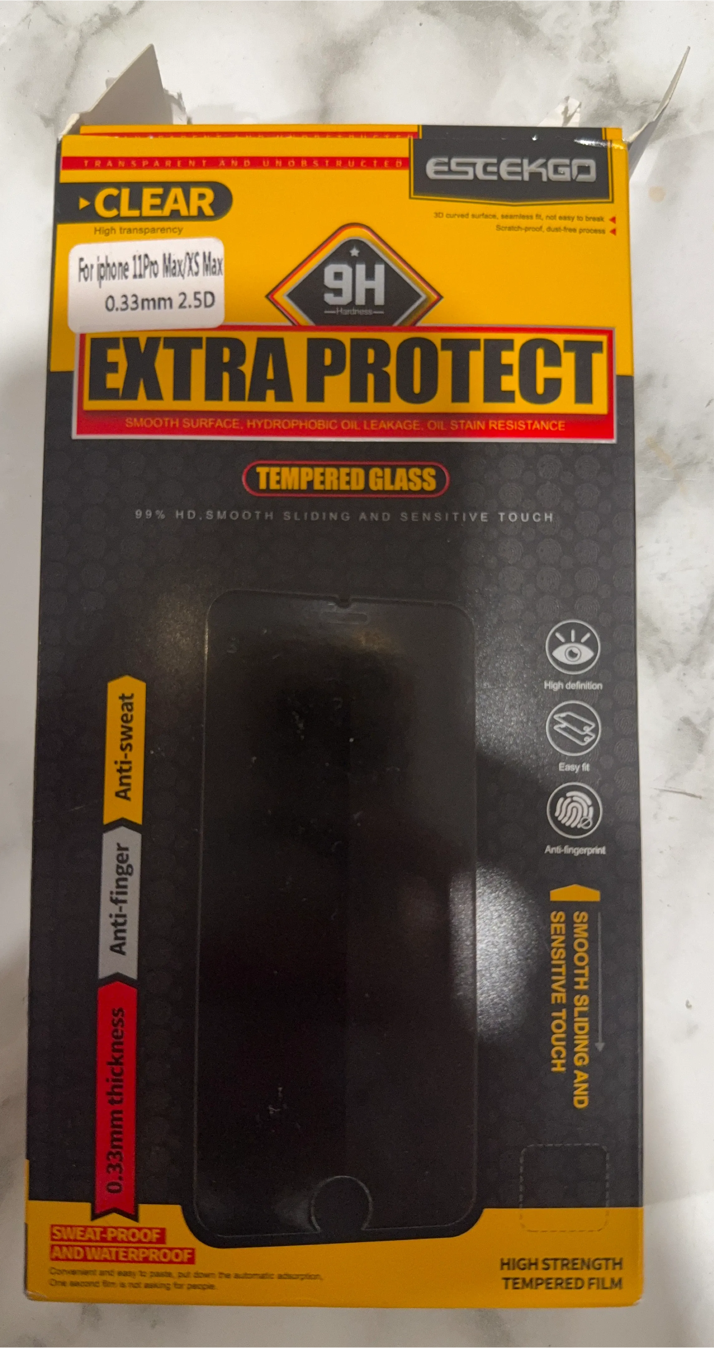 Selling a new ESTEKGO tempered glass screen protector for iPhone 11 Pro Max/XS Max. It features: