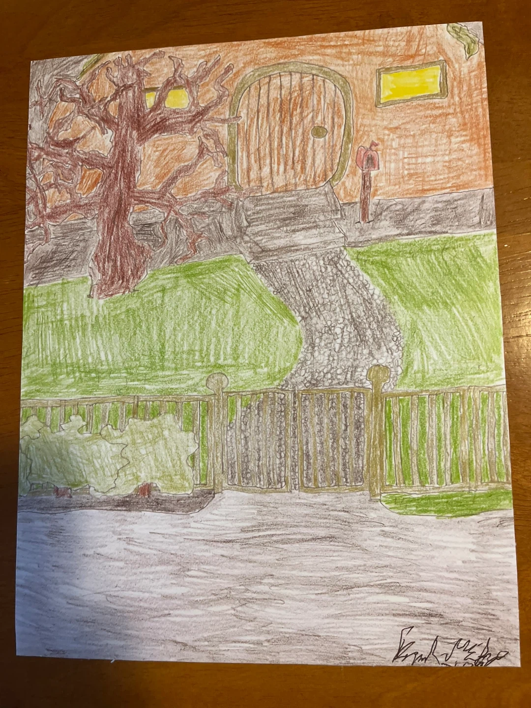 This is an original drawing depicting a charming scene of a hobbit hole. It shows the round wooden door, a winding path, and a large, bare tree. The artwork also includes a small mailbox and a gold fence with greenery. A unique piece for any fan of halflings or hobbits. Dimensions are 8.5”x11”, you can get the print on either cardboard print or print paper you choose. Shipping is $6.00 Canadian