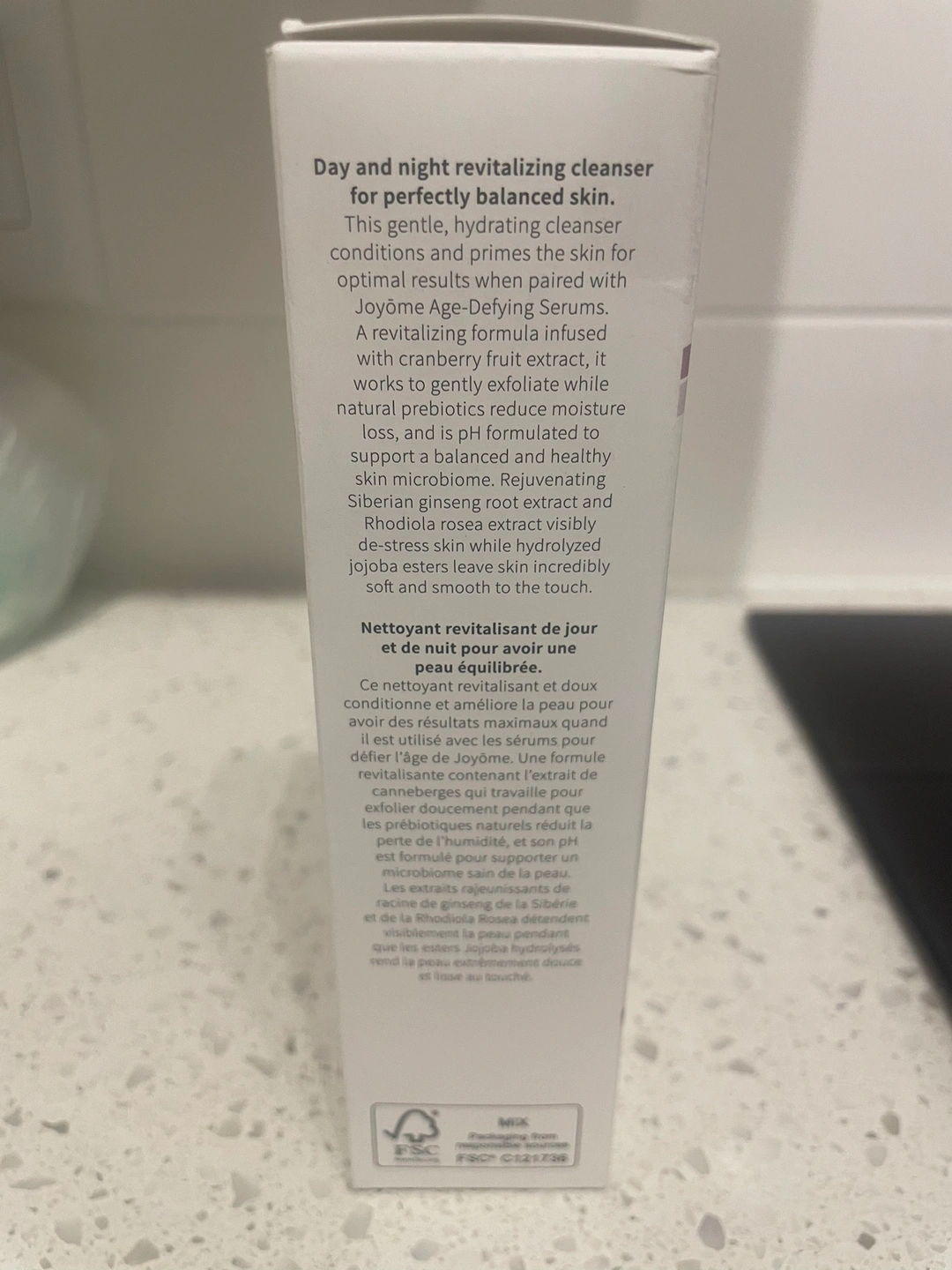 A revitalizing daily cleanser for perfectly balanced skin. This gentle cleanser primes the skin for optimal results when paired with Joyōme Age-Defying Serums. A revitalizing formula infused with cranberry fruit extract, it works to gently exfoliate while natural prebiotics reduce moisture loss, and a pH formula helps to support balanced and healthy skin microbiome. Rejuvenating Siberian Ginseng root extract and Rhodiola rosea extract visibly de-stress skin while hydrolyzed jojoba esters leave skin incredibly soft and smooth to the touch.
