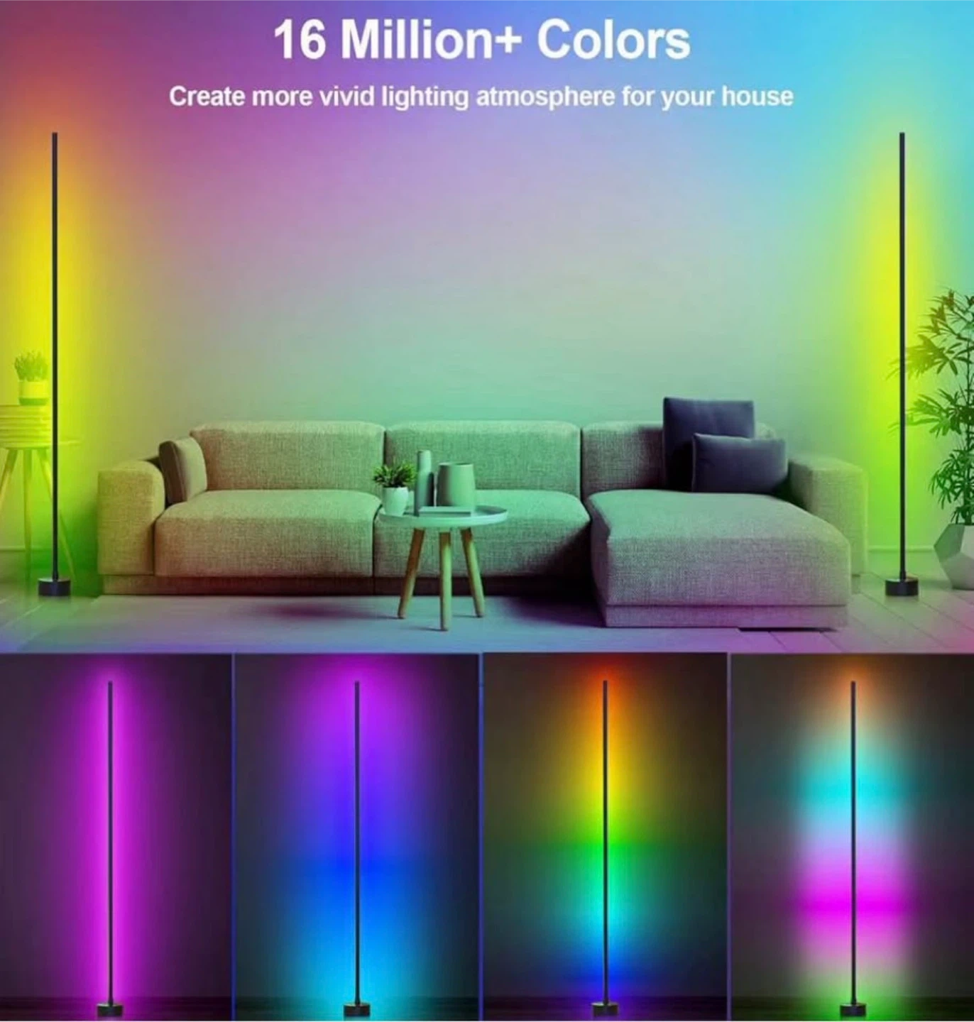 Corner Floor Lamp, 2 Pack LED Floor Lamp with App & Remote, Smart RGB Corner Lamp with 16 Million Colors, Music Sync, Scene Modes, Color Changing Standing Lamps for Living Room, Bedroom