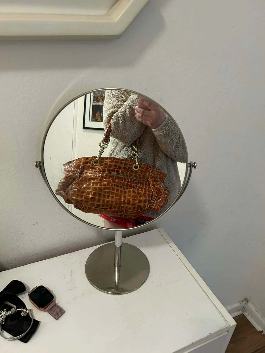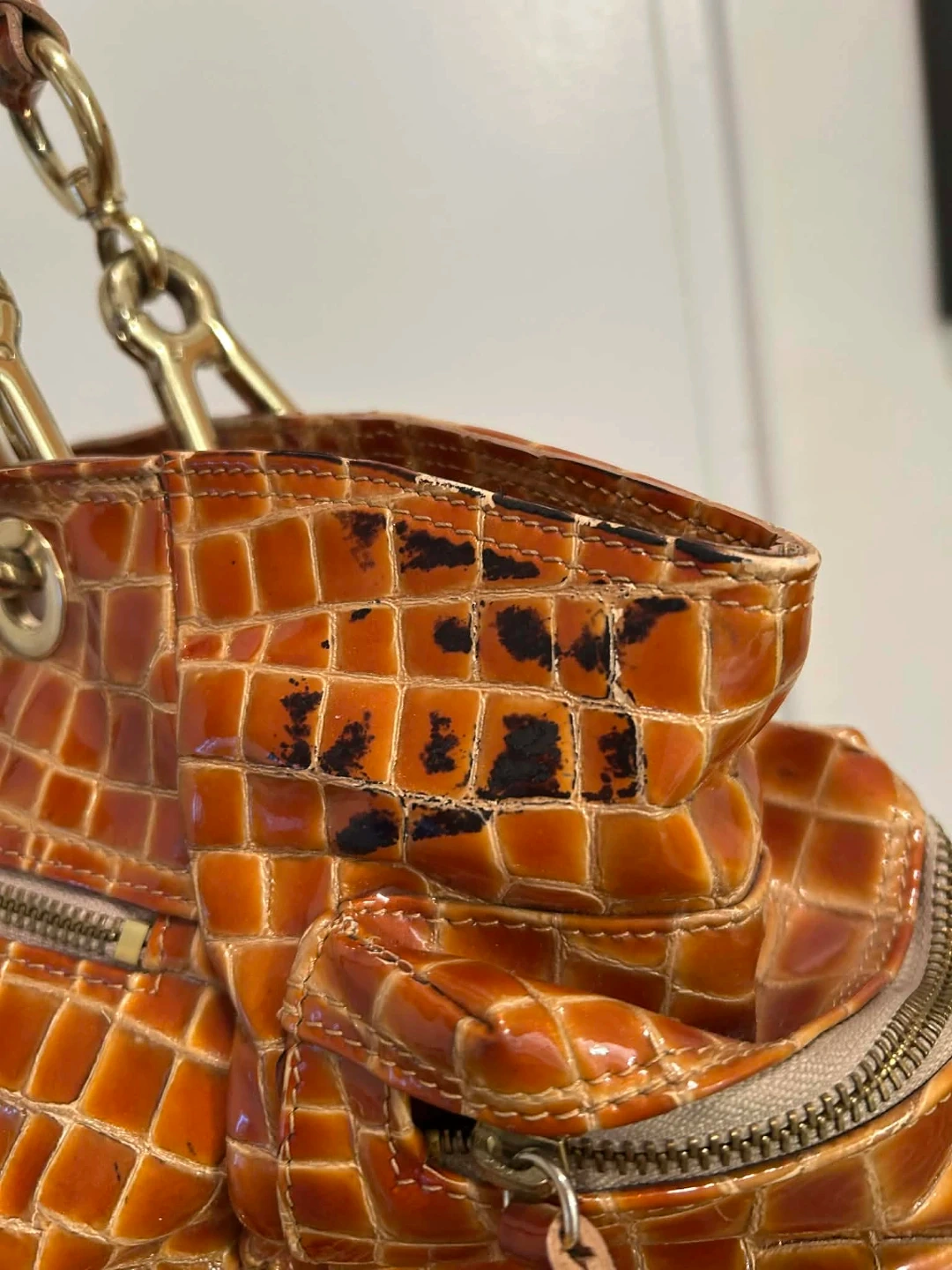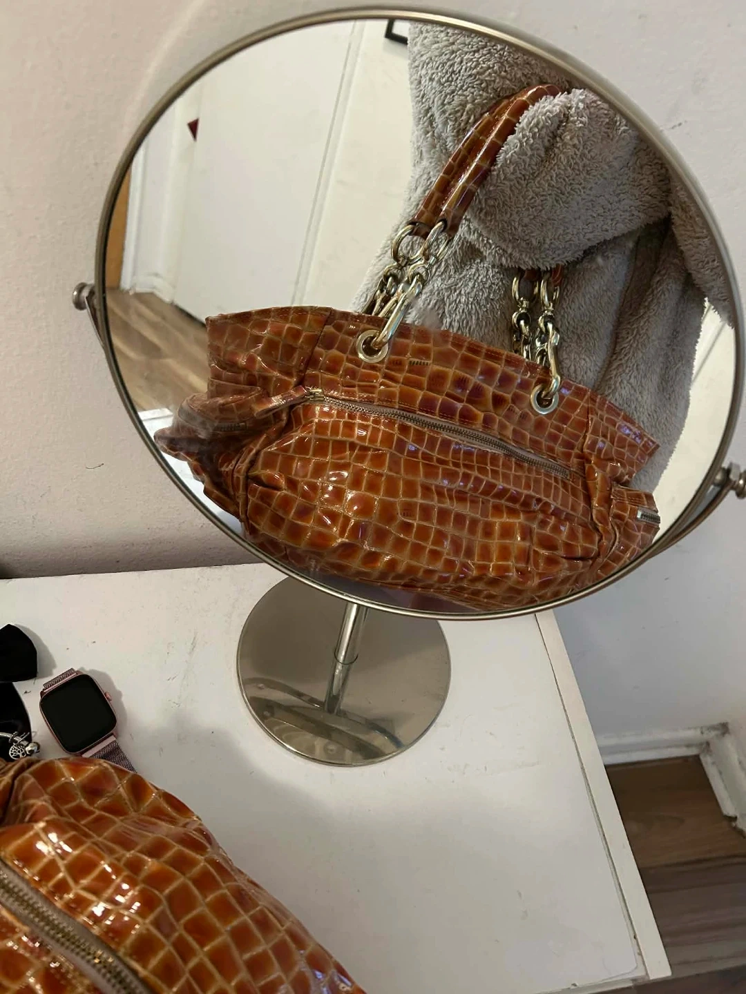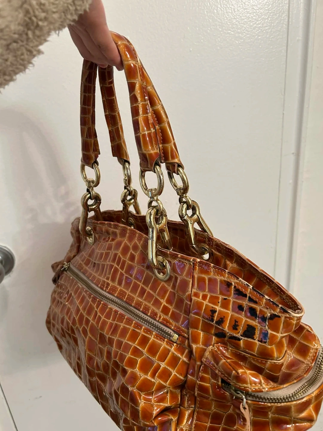 Brown Faux Croc Handbag