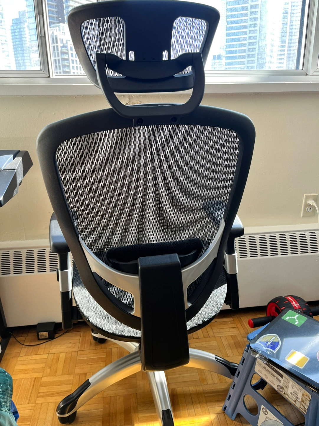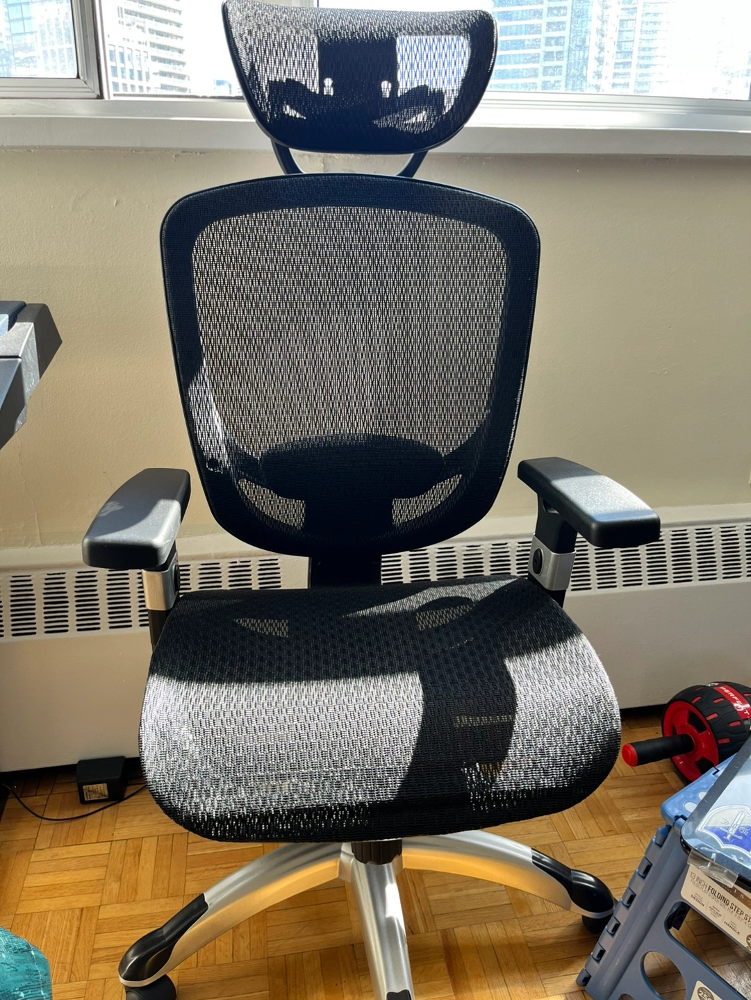 This chair is in great condition and has all the features you need for a comfortable and productive workday. It has adjustable armrests and a headrest. Also height adjustable.