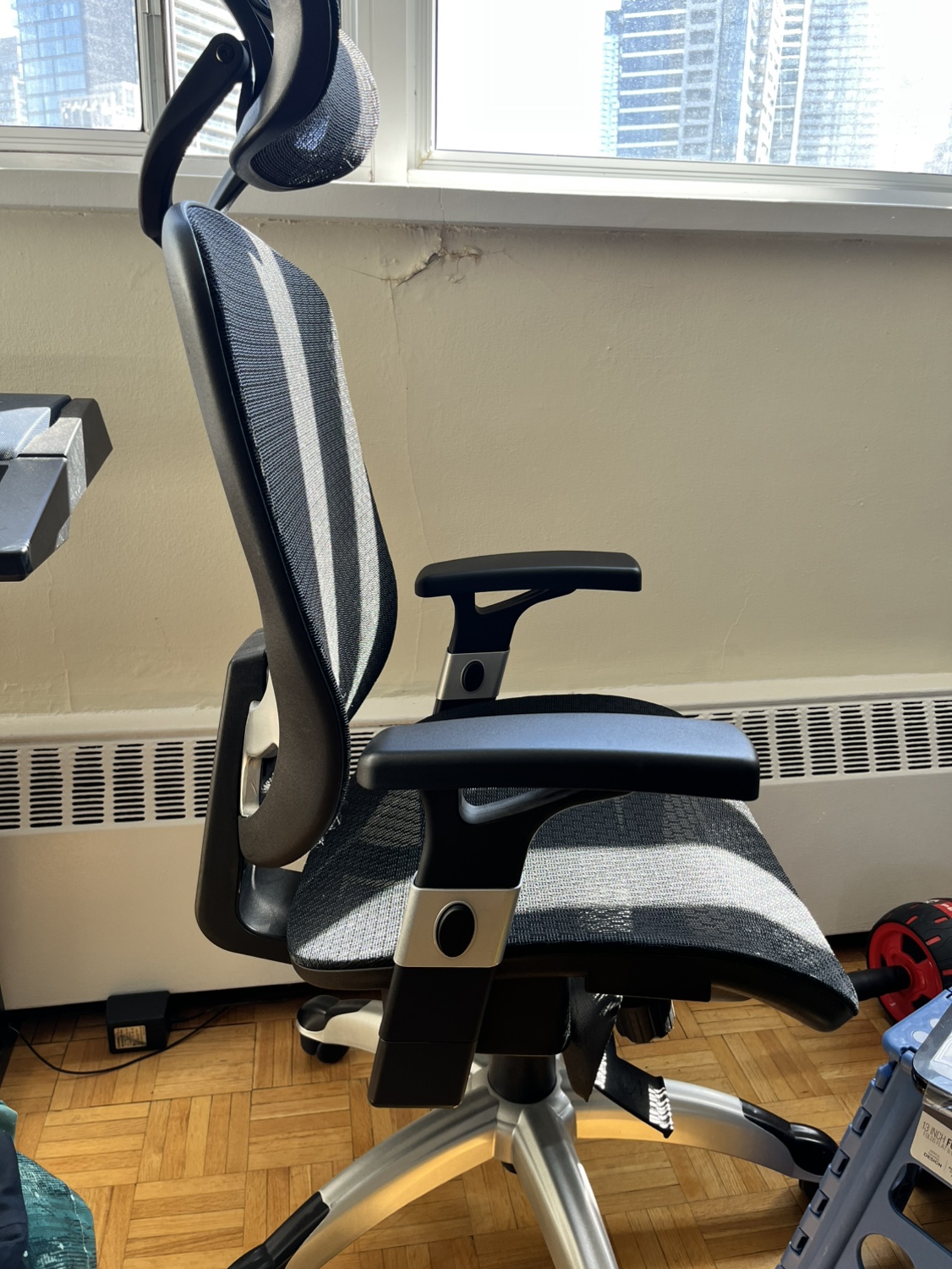 This chair is in great condition and has all the features you need for a comfortable and productive workday. It has adjustable armrests and a headrest. Also height adjustable.