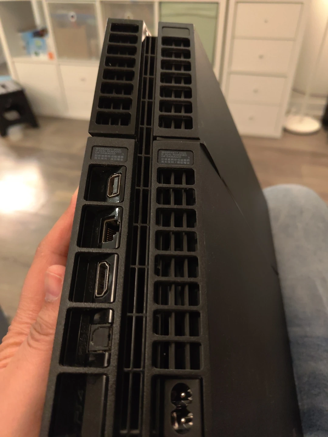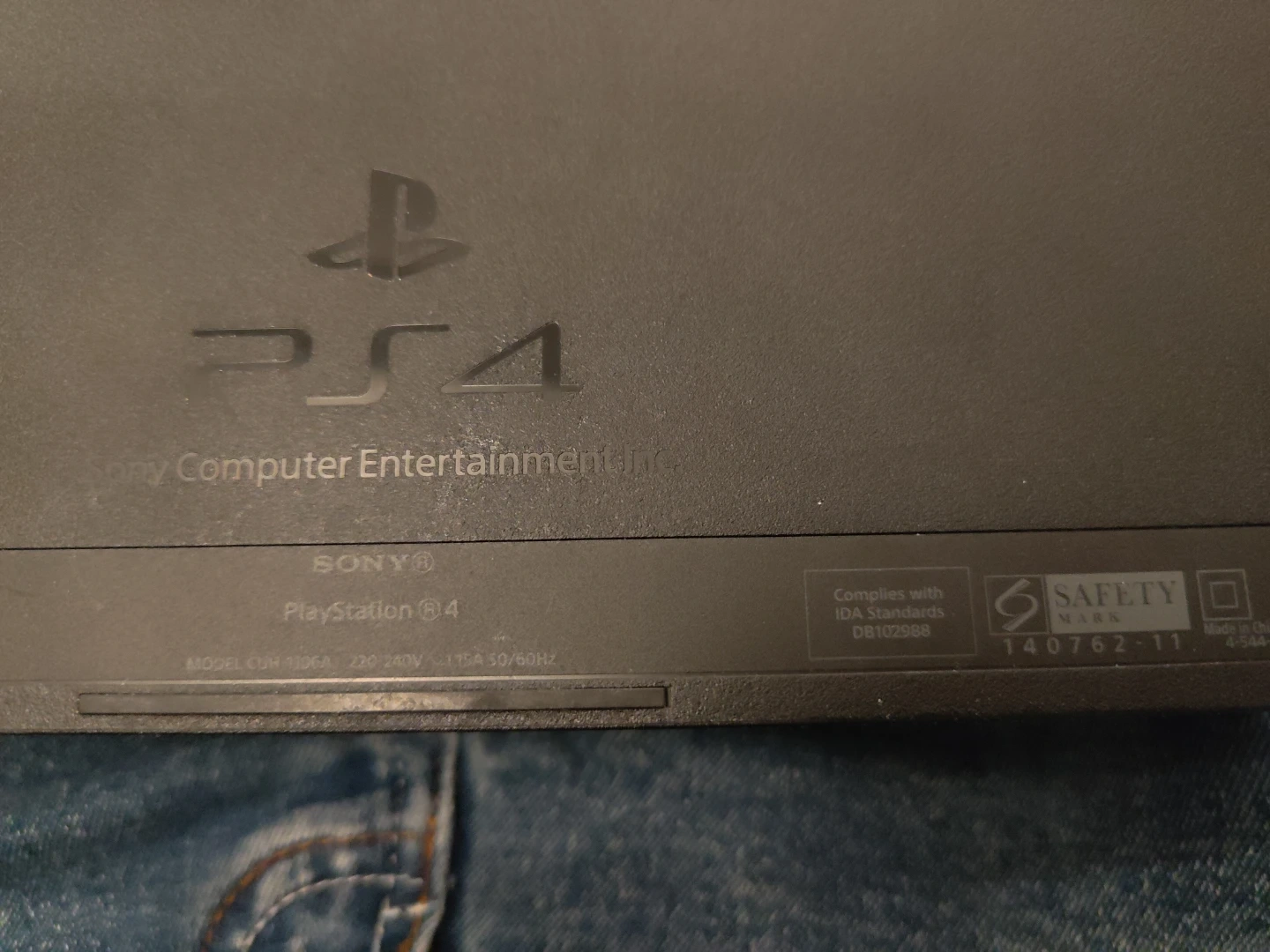 Hong Kong Version. Only console. And power chors. I cam give 1 HDMI and 1 controller. This is a black Sony PlayStation 4 Slim console. It features ports for HDMI, USB, and Ethernet. Ready for gaming adventures!