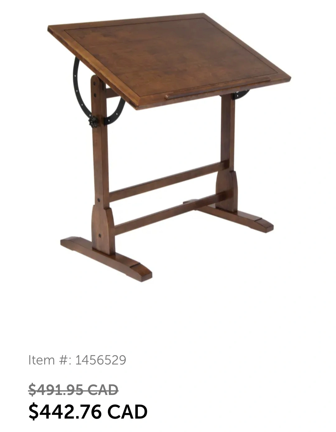 Gorgeous oak, adjustable top drafting table. Includes a height-adjustable matching stool. Vintage brown oak finish. Great for artists or students. The table is made from a solid wood frame measuring 36×24". Table top tilts from 0 to 90 degrees for versatility. The pneumatic lift on the stool raises and lowers the seat. The stool features an extra wide steel base for stability. Stool is currently on sale for $157 including taxes. I paid approximately $325 for the table. Everything included is unused. The table was a four hour assembly process. There is a very small flaw that does not affect the table or the function (please view last photo). One of the knobs that keeps the tilt in place arrived without the actual handle knob that turns to lock the table in place. There is only the screw for one side of the table. It does not affect use.