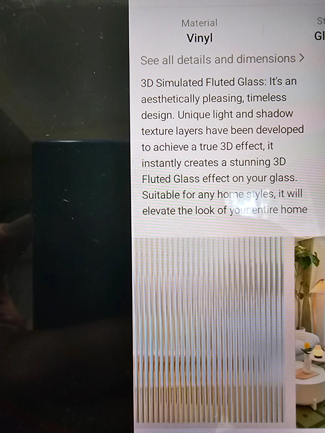 This vinyl film offers a 3D Simulated Fluted Glass effect for your windows or glass surfaces. It's made from vinyl material and creates a pleasing, timeless design. This film is suitable for elevating the look of any home style. 29.53*86.61 inch