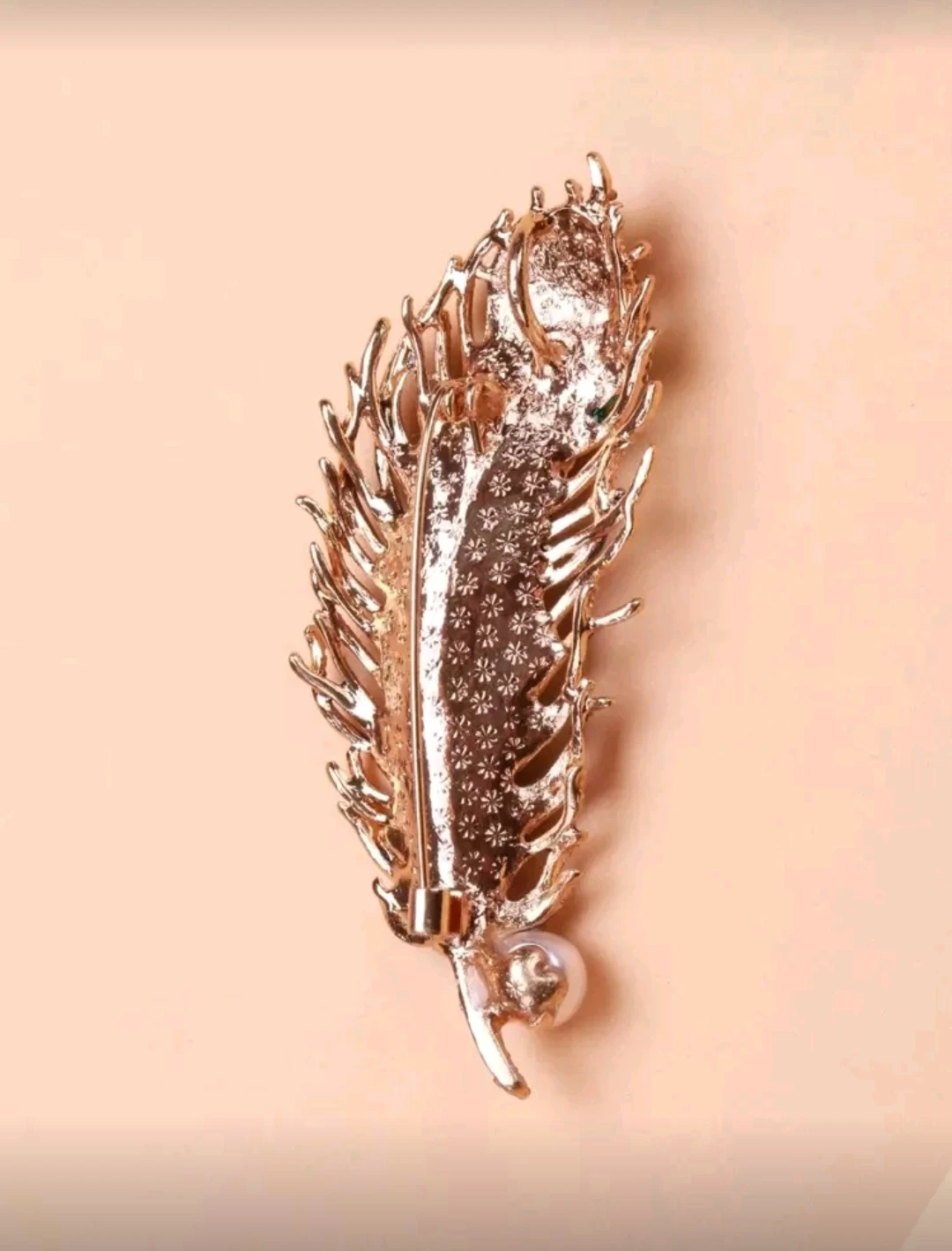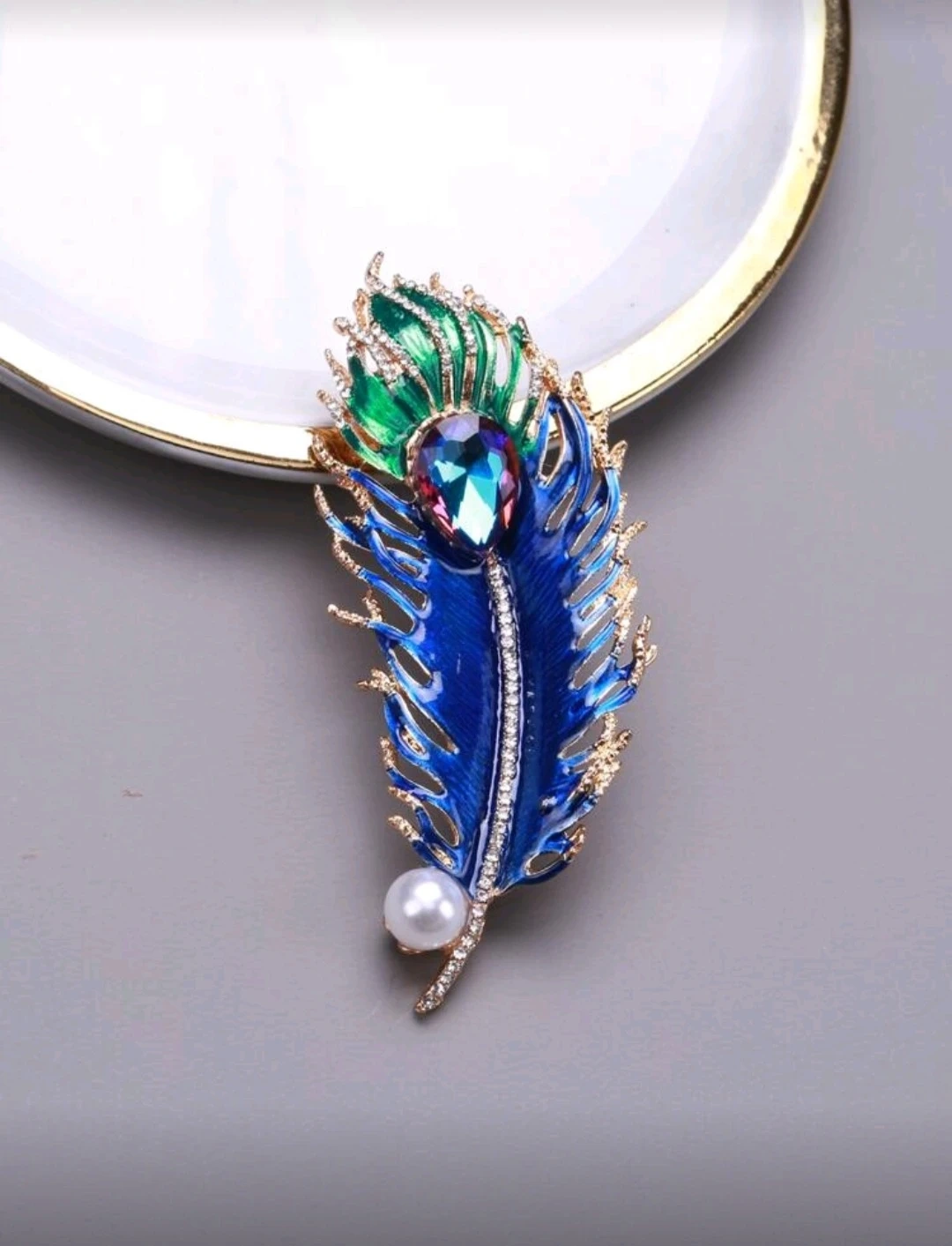 Peacock Feather Rhinestone Brooch