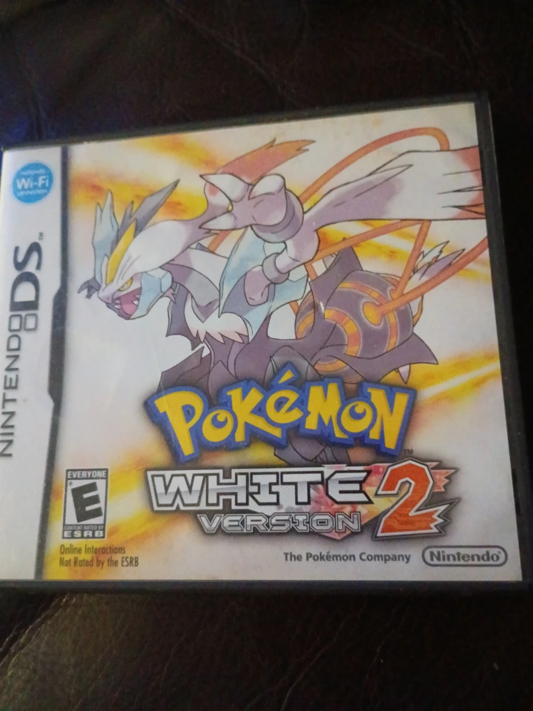 Pokemon White Version 2 for Nintendo DS. Rated E for Everyone by ESRB. Includes online interactions. It's compatible with Wi-Fi.