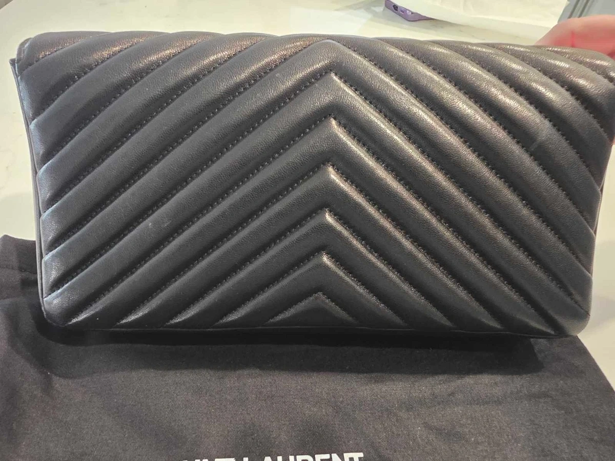 Indulge in the refined sophistication of the Saint Laurent Kate 99, a contemporary take on the house’s beloved 90s baguette silhouette. Crafted in supple black lambskin with the signature chevron quilting, this piece embodies everything collectors love about YSL. Structure, softness, and unmistakable luxury.