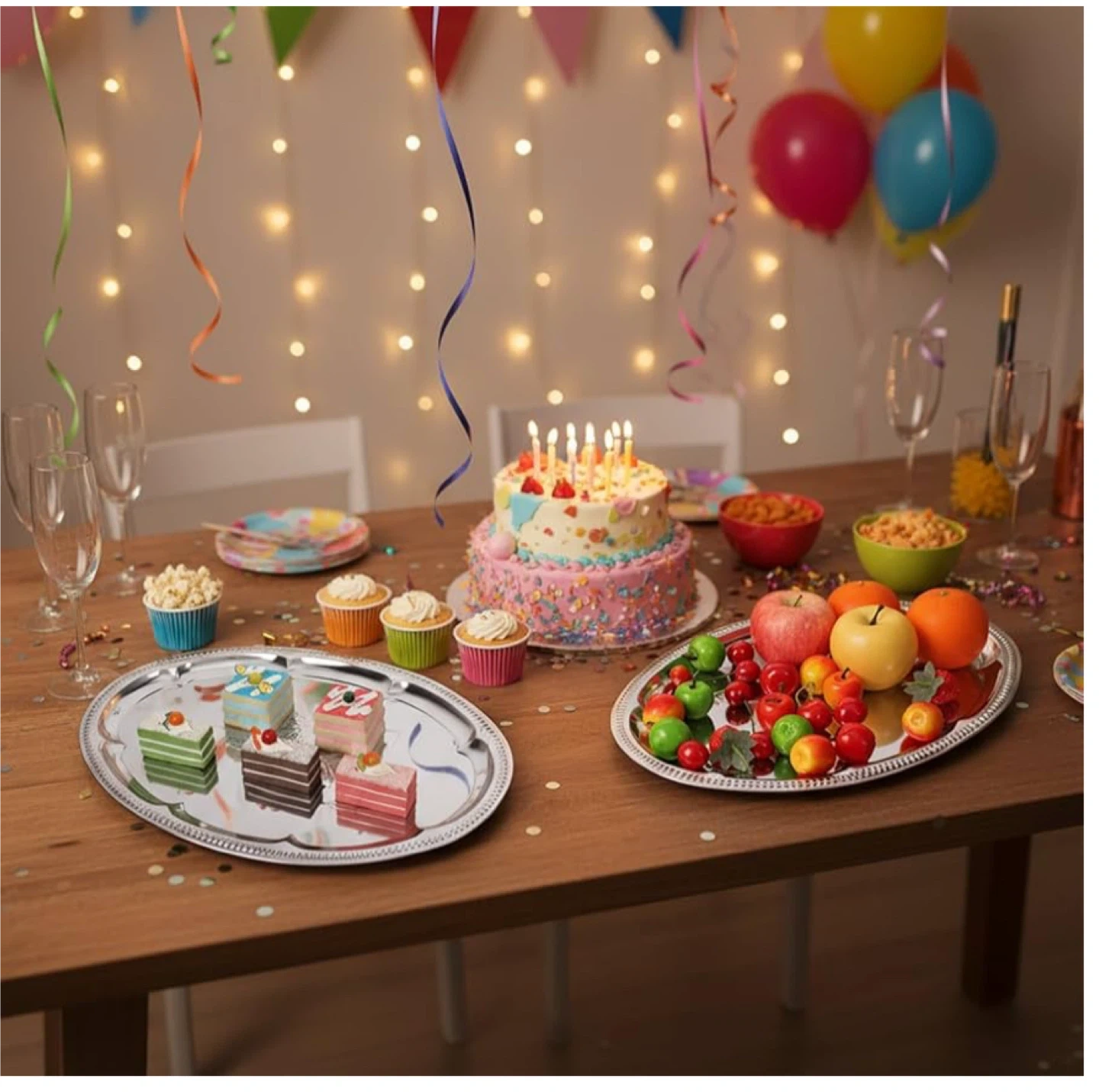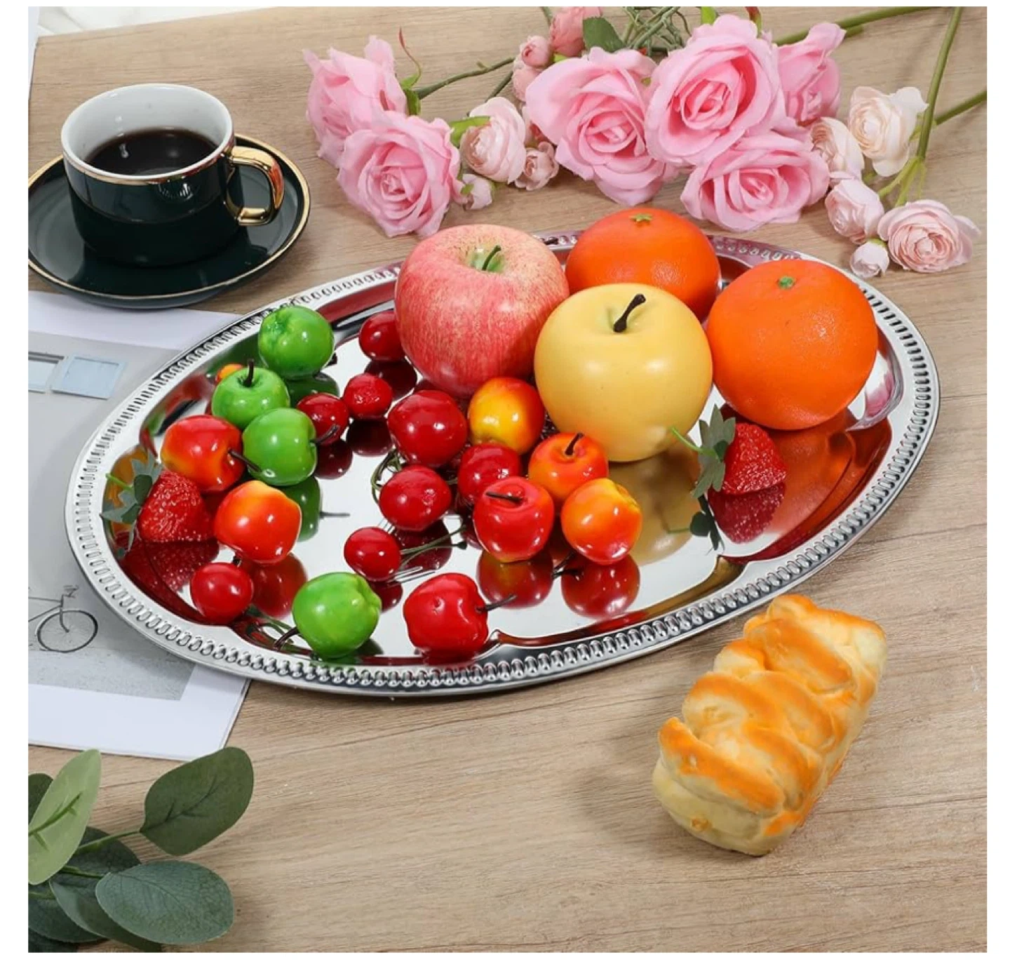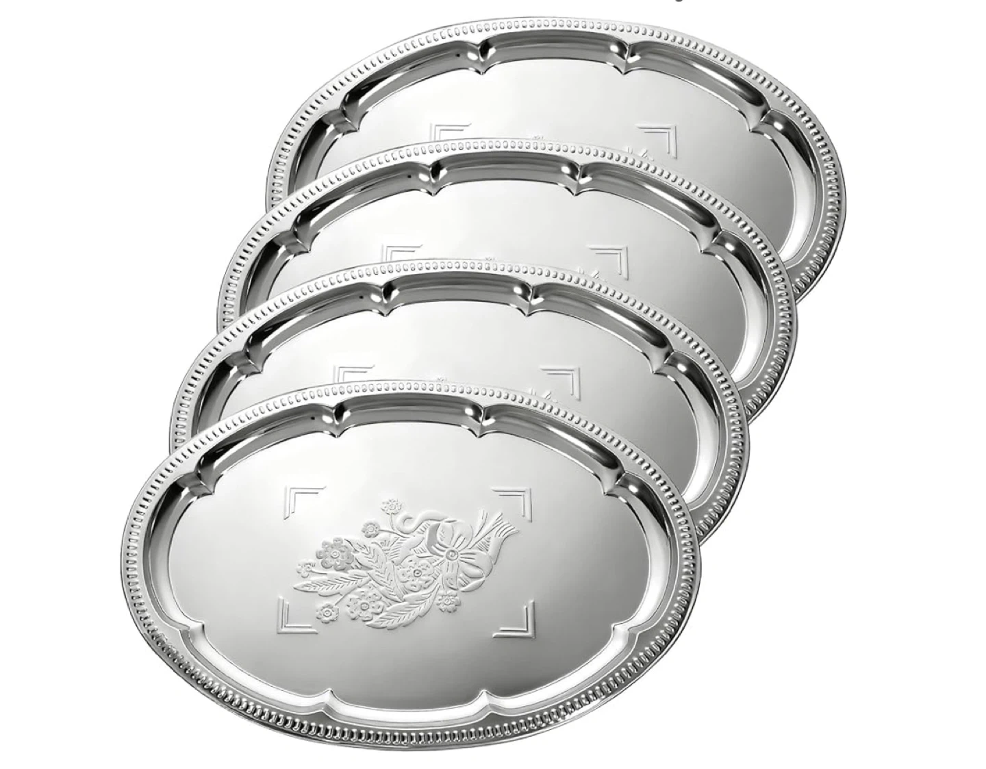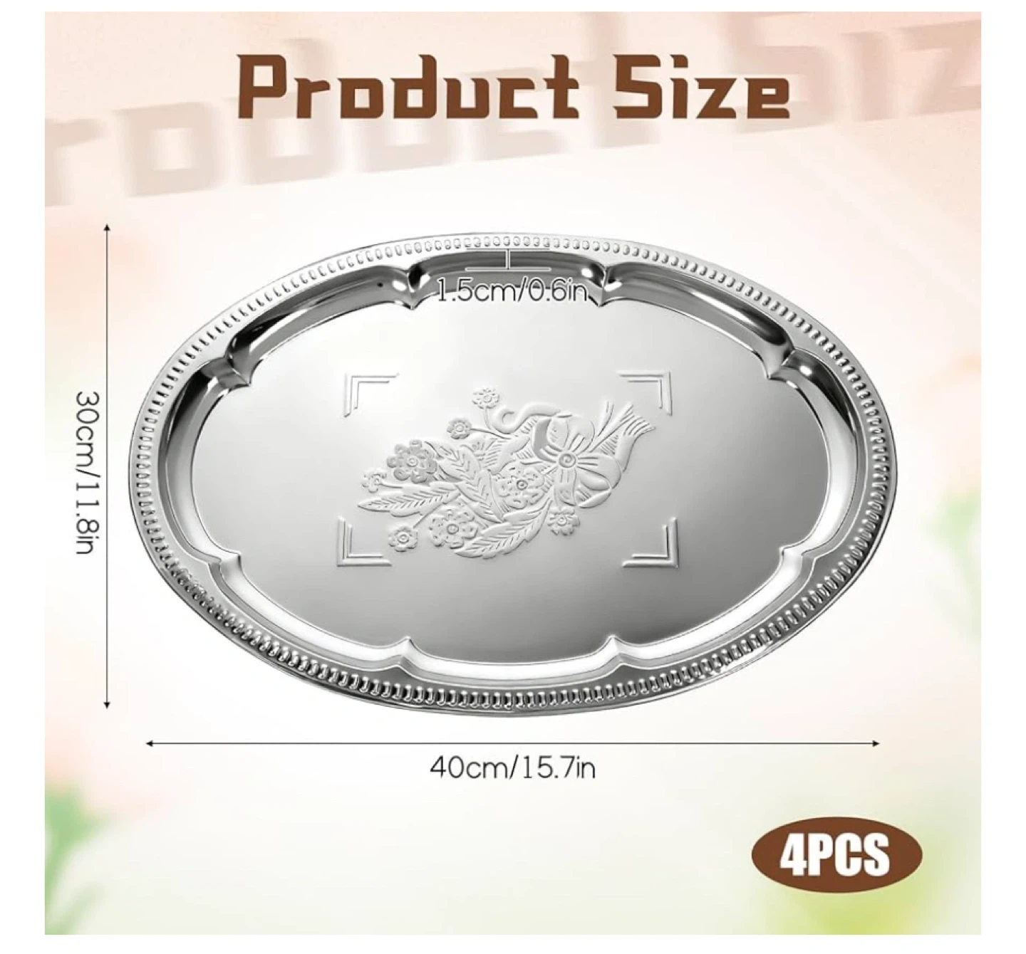 Food-Grade Stainless Steel for Safety & Longevity: Crafted from high-quality stainless steel, these silver trays are harmless, non-toxic, and resistant to rust, impact, and high temperatures. Smooth edges prevent scratches, and the mirror-polished surface boosts aesthetics, complementing any dining set. They’re durable enough for long-term home or light commercial use, ensuring safe, reliable food contact