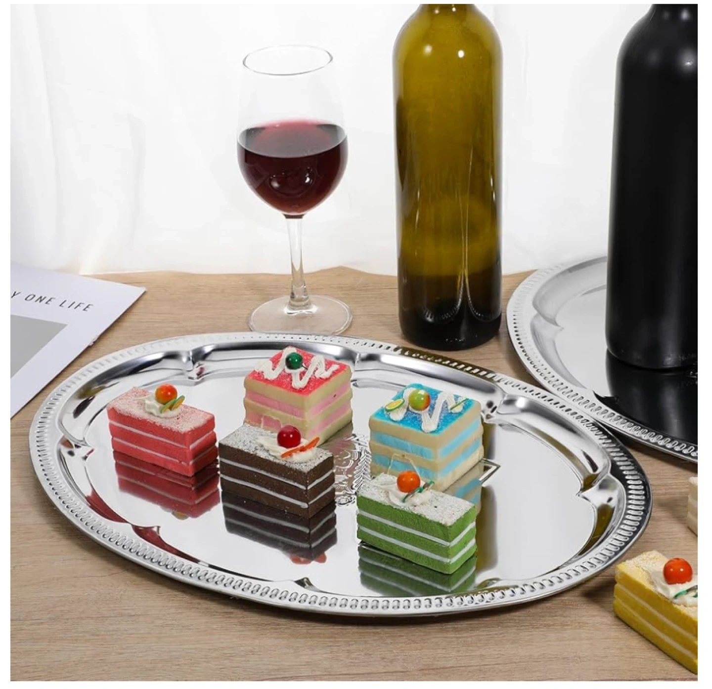 Food-Grade Stainless Steel for Safety & Longevity: Crafted from high-quality stainless steel, these silver trays are harmless, non-toxic, and resistant to rust, impact, and high temperatures. Smooth edges prevent scratches, and the mirror-polished surface boosts aesthetics, complementing any dining set. They’re durable enough for long-term home or light commercial use, ensuring safe, reliable food contact