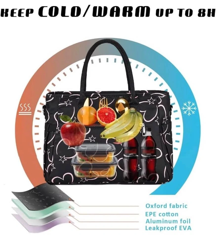 Hshrich insulated lunch bag for women, large leakproof cooler purse with side pockets & removable shoulder strap. Heart pattern, 10 Litres. Pick up from Major Mackenzie and Weston rd. Final sale, no return or exchange. A deposit is required for holds.
