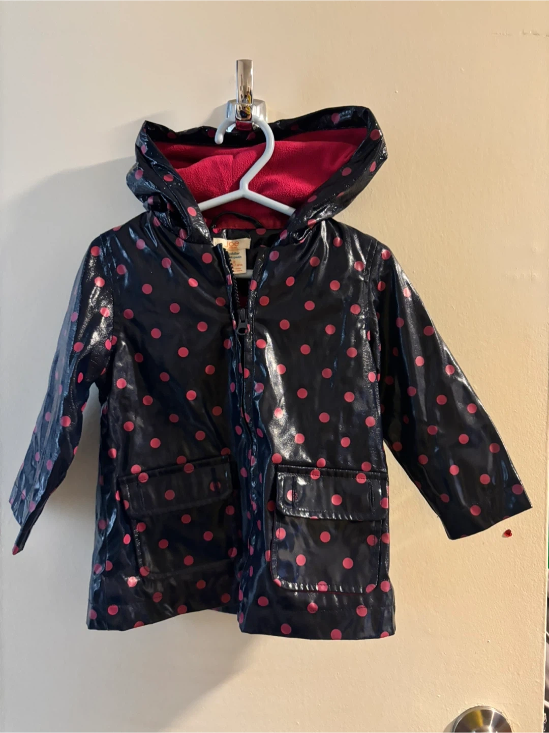 2T polkadot rain jacket, navy blue and link, Joe Fresh