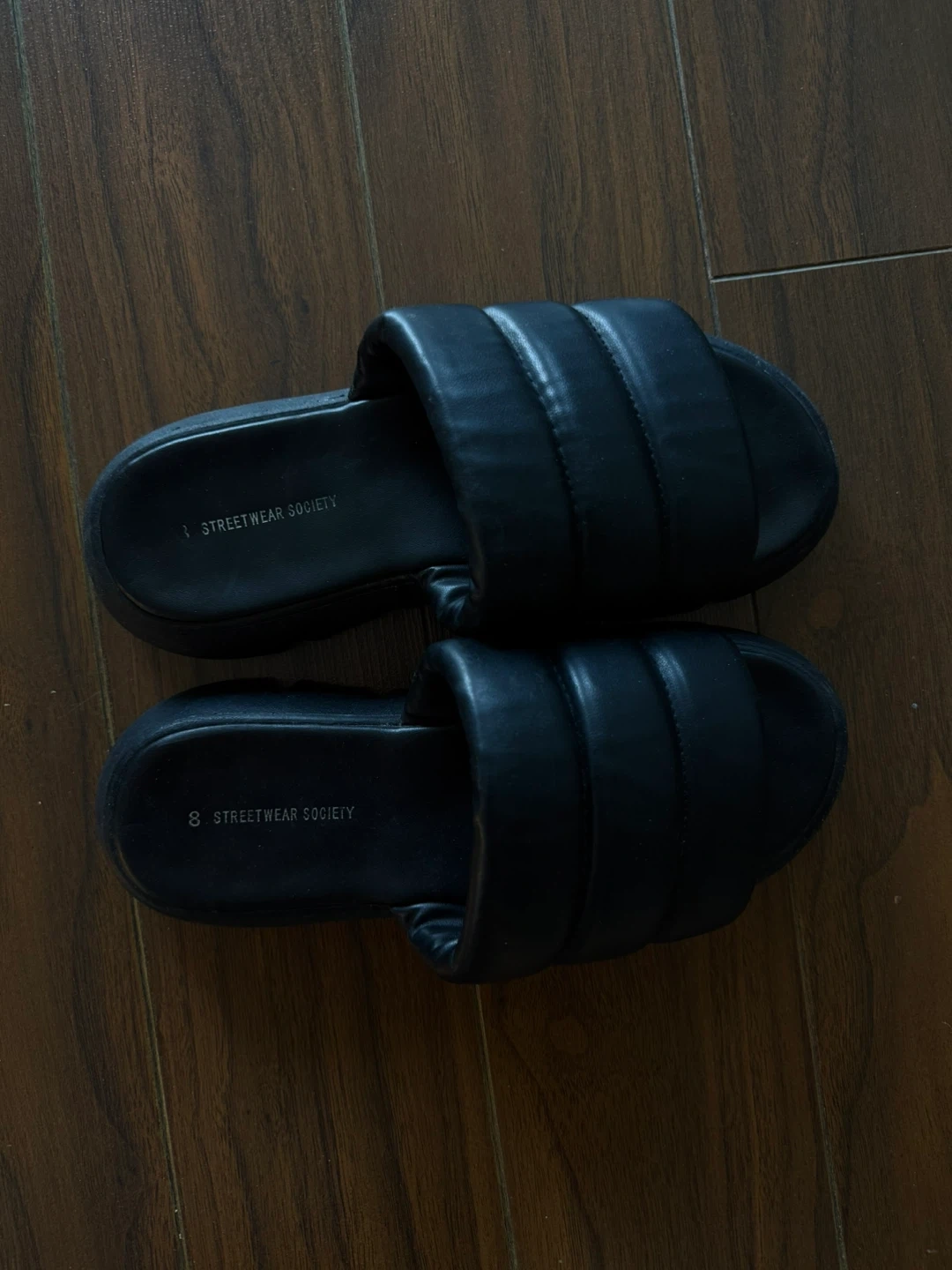 Buy & SellBlack Leather Puffy SlidesBlack Leather Puffy Slides$6These black leather puffy slides from Streetwear Society are super comfy. They feature a cushioned footbed and a durable outsole.ConditionGoodSizeEUR 38BrandStreetwear SocietyWHERE TO MEETDownTown City PlaceView MapSELLERverifiedSamaCityPlace1336 reviews0 chats·0 favorites·12 viewsSEND CHAT TO SELLERHi Sama! I’m interested in your listing.Hi Sama! I’m interested in your listing.Get the Karrot app to chatSign In to chat