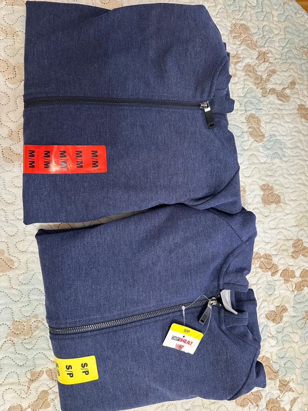 Two SEAHHEAT full zip jackets are available. One is a size medium, and the other is a size small. Both are navy blue. These are great for layering in cooler weather!