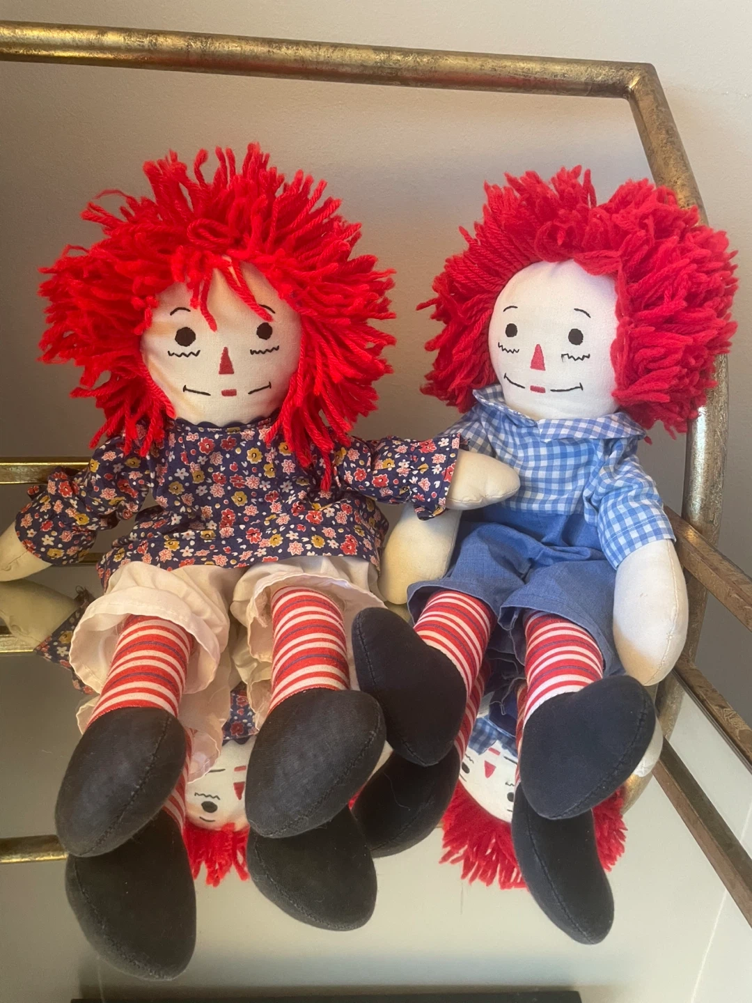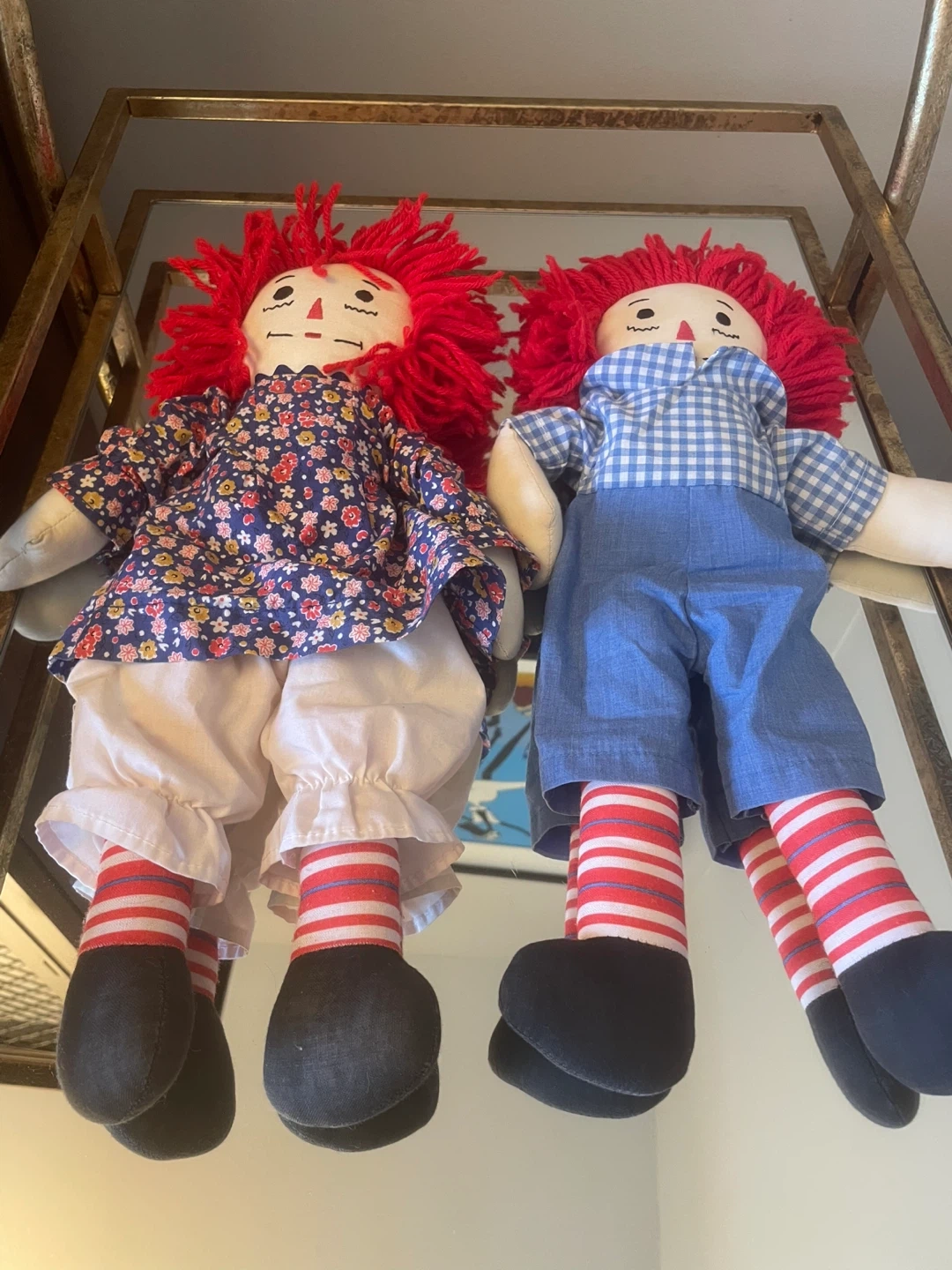 These two iconic friends Raggedy Ann and Andy were handmade in the 1980’s.