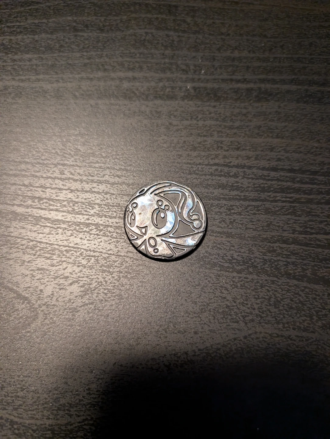 This is a Pokemon coin token. It features the Pokemon logo on one side and a character design on the other. Great for collectors or as a fun accessory!