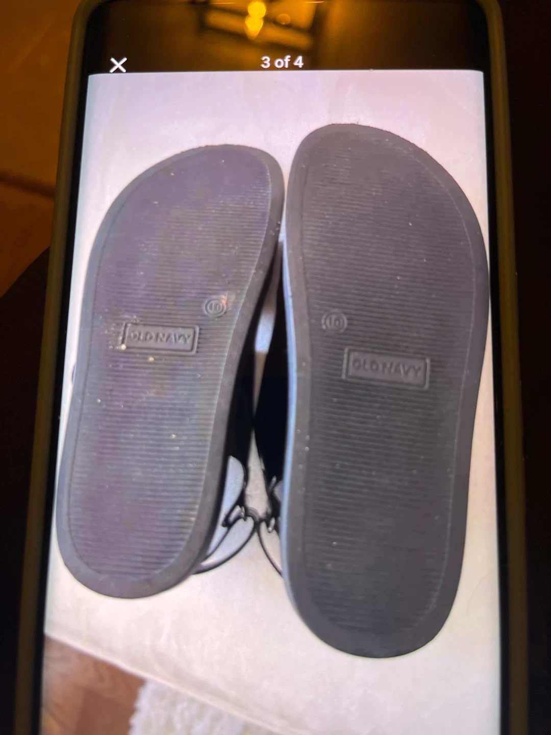 Black patent sandals from Old Navy. Feature adjustable buckle straps for a secure fit. The soles are black with "OLD NAVY" embossed on them. Perfect for warm weather!
