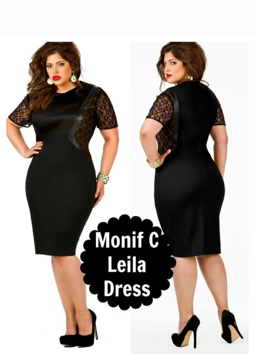 A chic black dress from Designer Monif C. It features short lace sleeves and a flattering silhouette. Purchased in NYC at Monif C boutique.