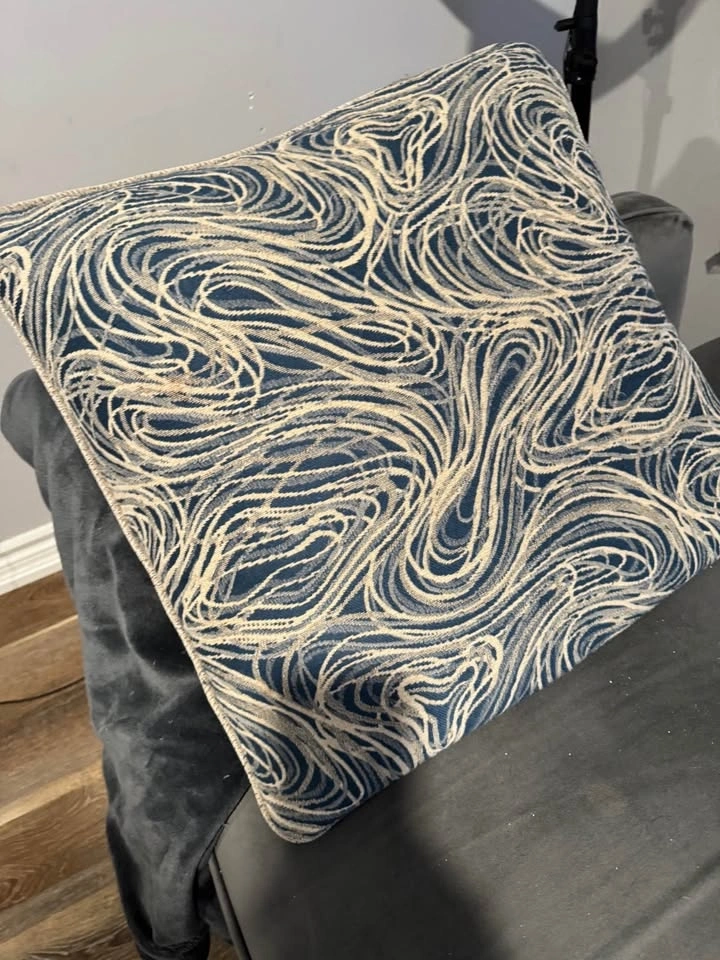 6 Throw Pillows Blue & Blue, Cream, Grey Swirl Geometric