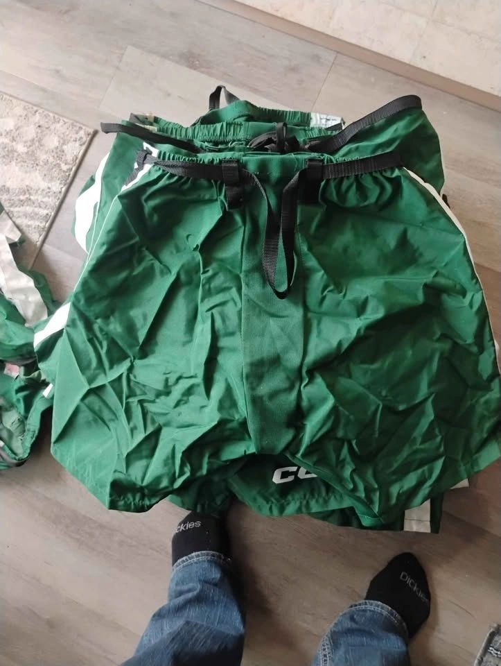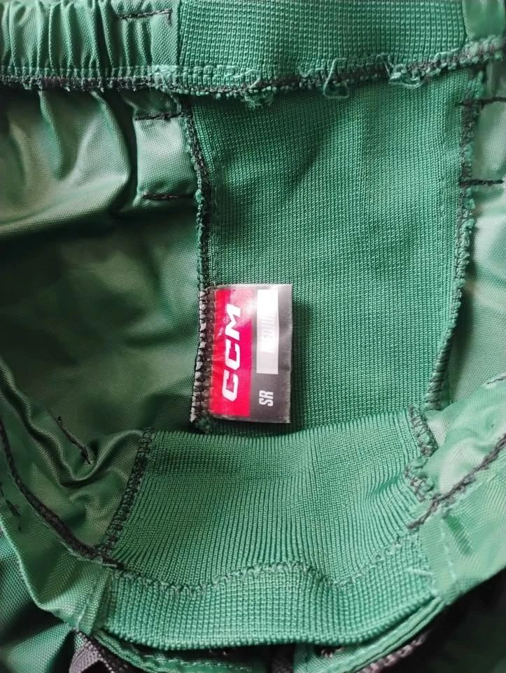 Green CCM hockey pants. SR Medium size. Has adjustable straps and laces for a good fit. Ready for the rink! I have 16 pair that are in brand new condition. Selling all 16 pairs for $150.