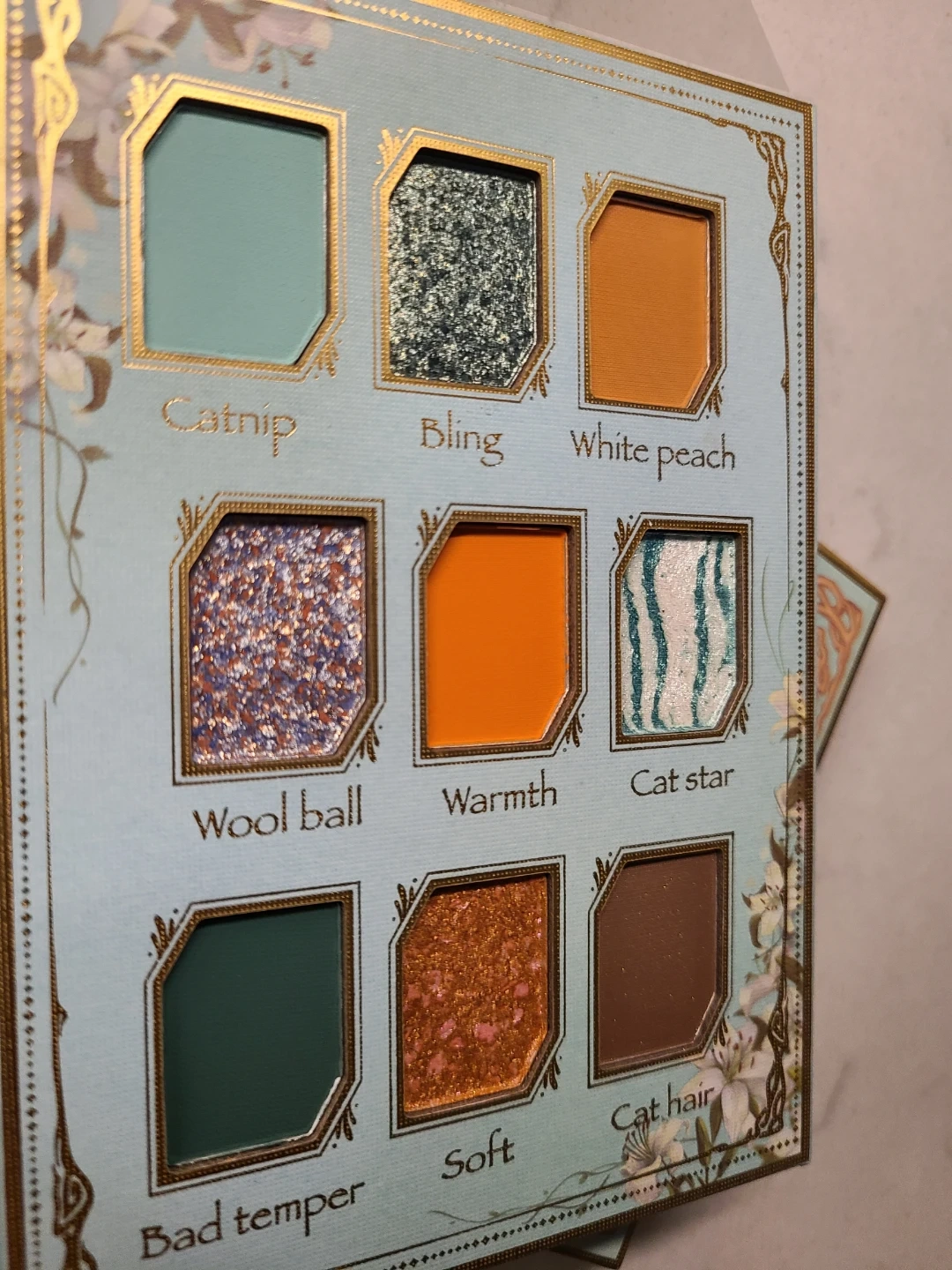 Oden's Eye Saga of Freja Cats Breath eyeshadow palette features nine shades. It's a great addition for any makeup collection!