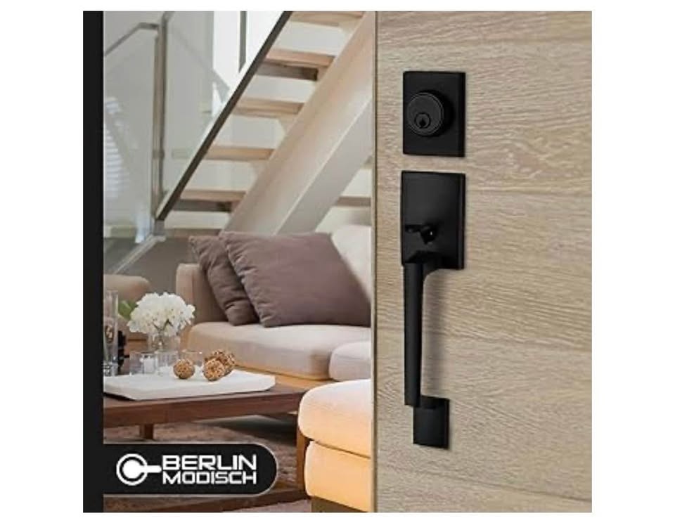 New Modisch Single Cylinder HandleSet with Lever Door Handle (for Entrance and Front Door). Reversible for Right and Left Handed deadbolt Handle Set. Iron Black. Pick up near Bloor and Dixie in Mississauga.