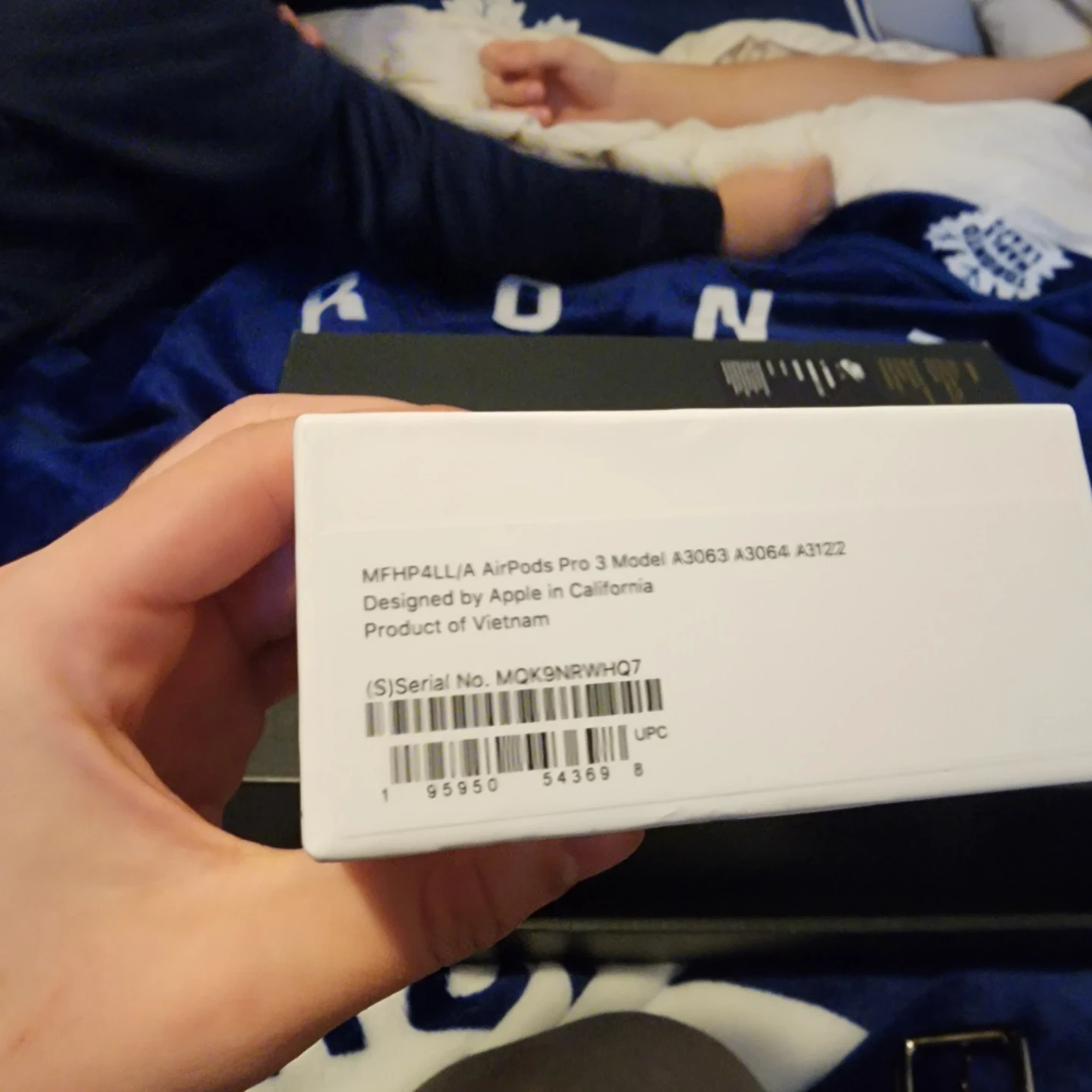 Apple AirPods Pro 3rd generation. Model A3063. Designed by Apple in California. Product of Vietnam. These are wireless earbuds.