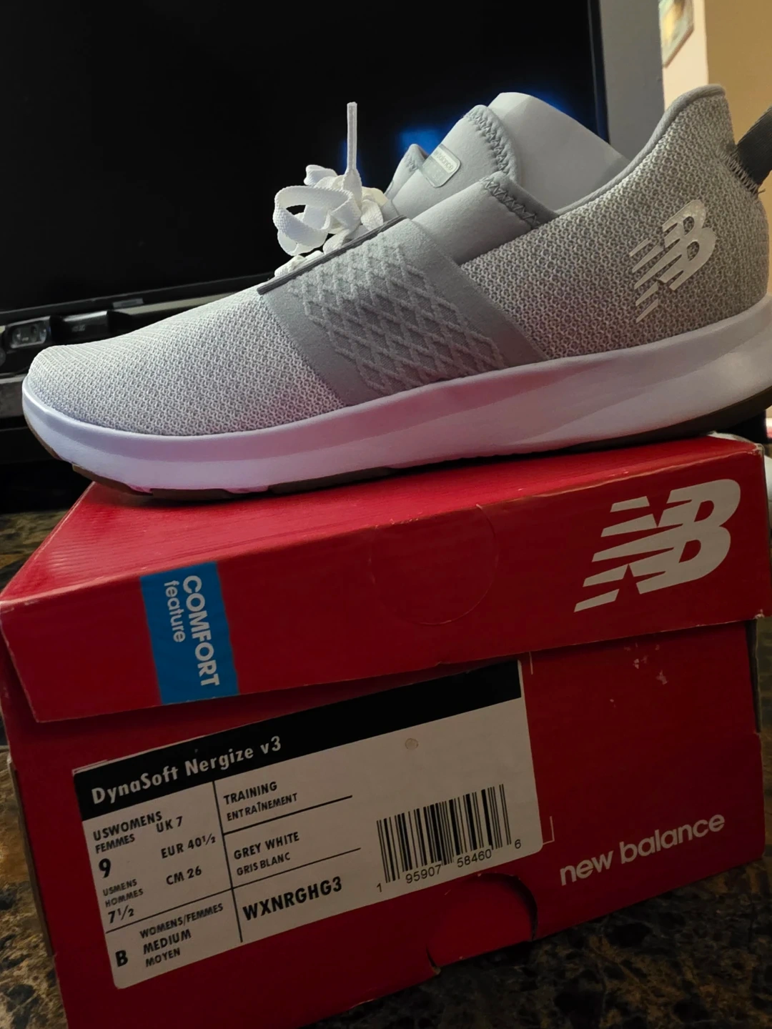 Selling a pair of New Balance DynaSoft Nergize v3 women's training shoes in size 9. Brandnew. These shoes are grey and white, perfect for training or everyday wear!