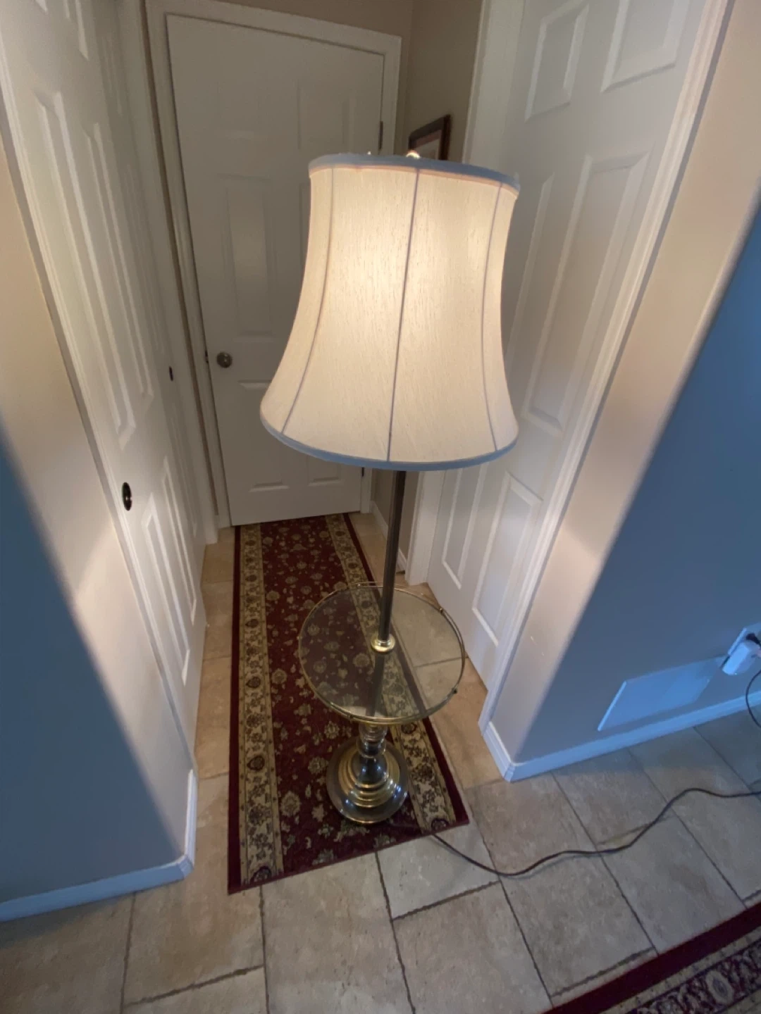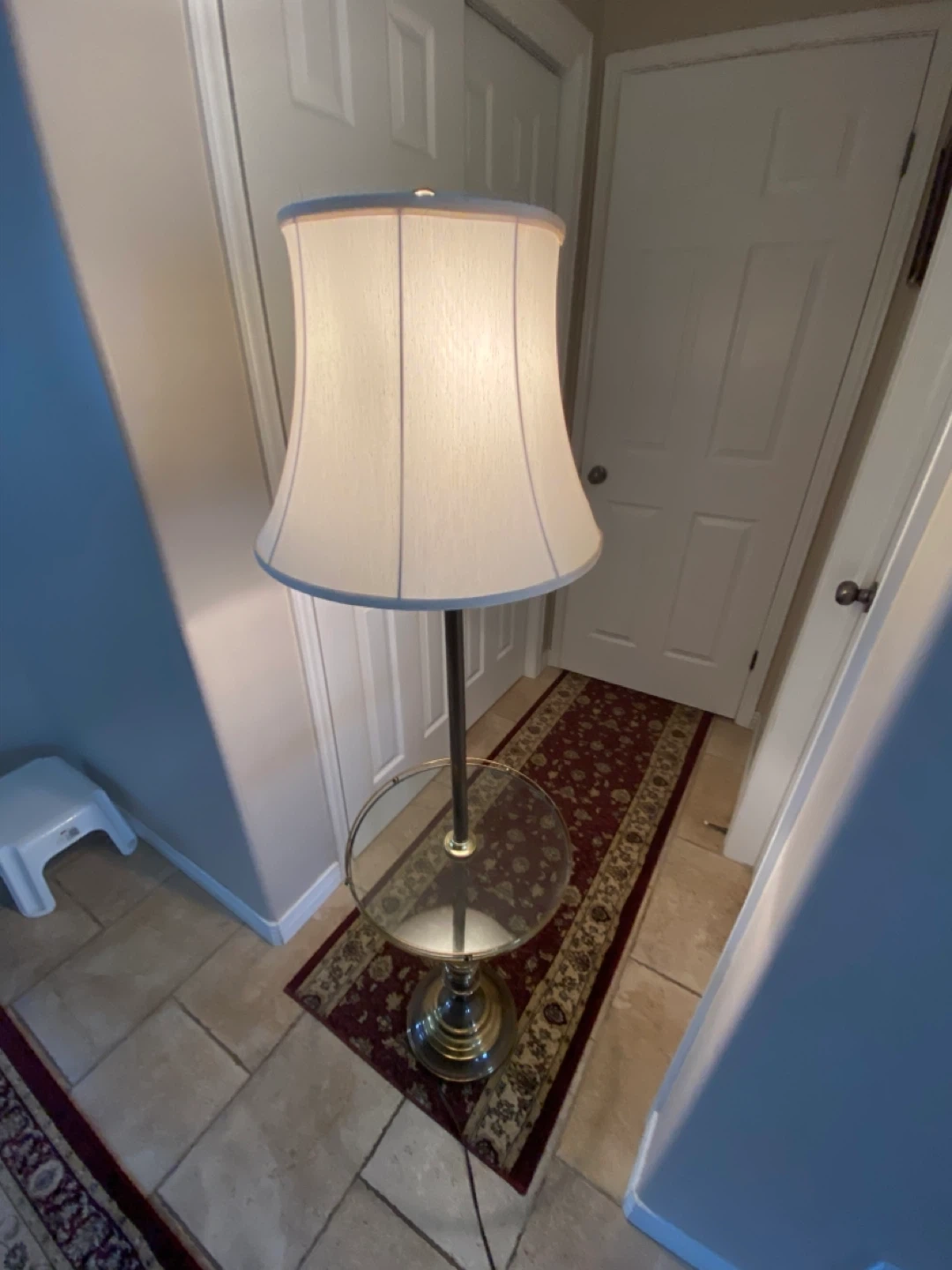 Antique Floor Brass Lamp with Glass Table with Brass trim