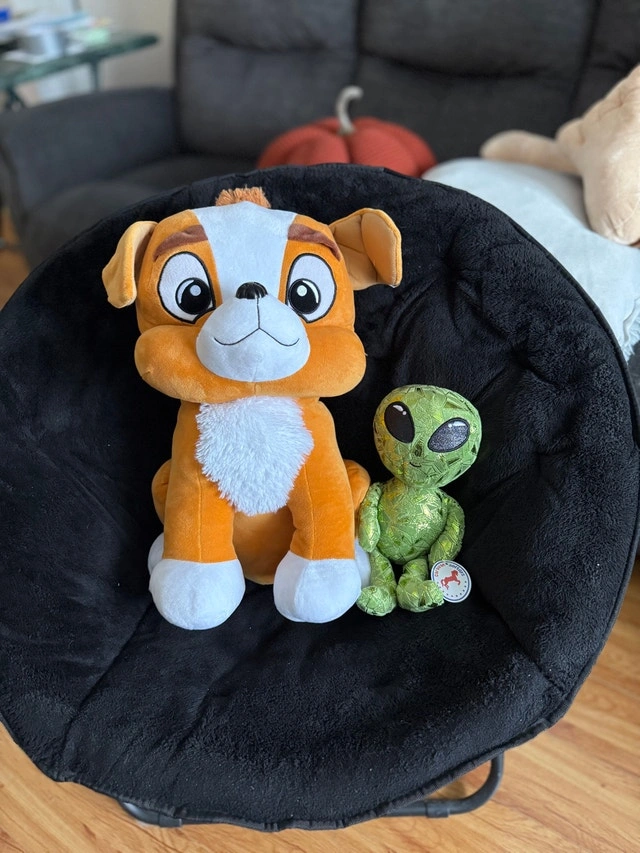 These plush toys are looking for a new home! Included are a Sasquatch (Big Foot), a dog and an alien. They are in good condition (like new).