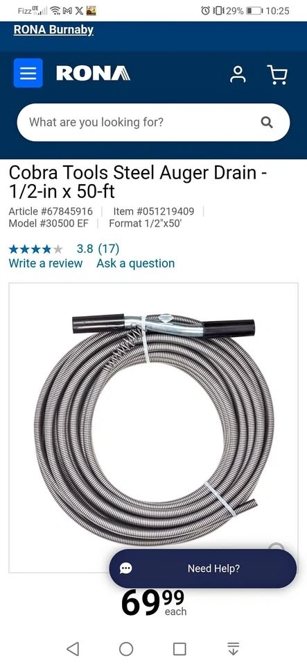 Brand new, never used Cobra drain snake.