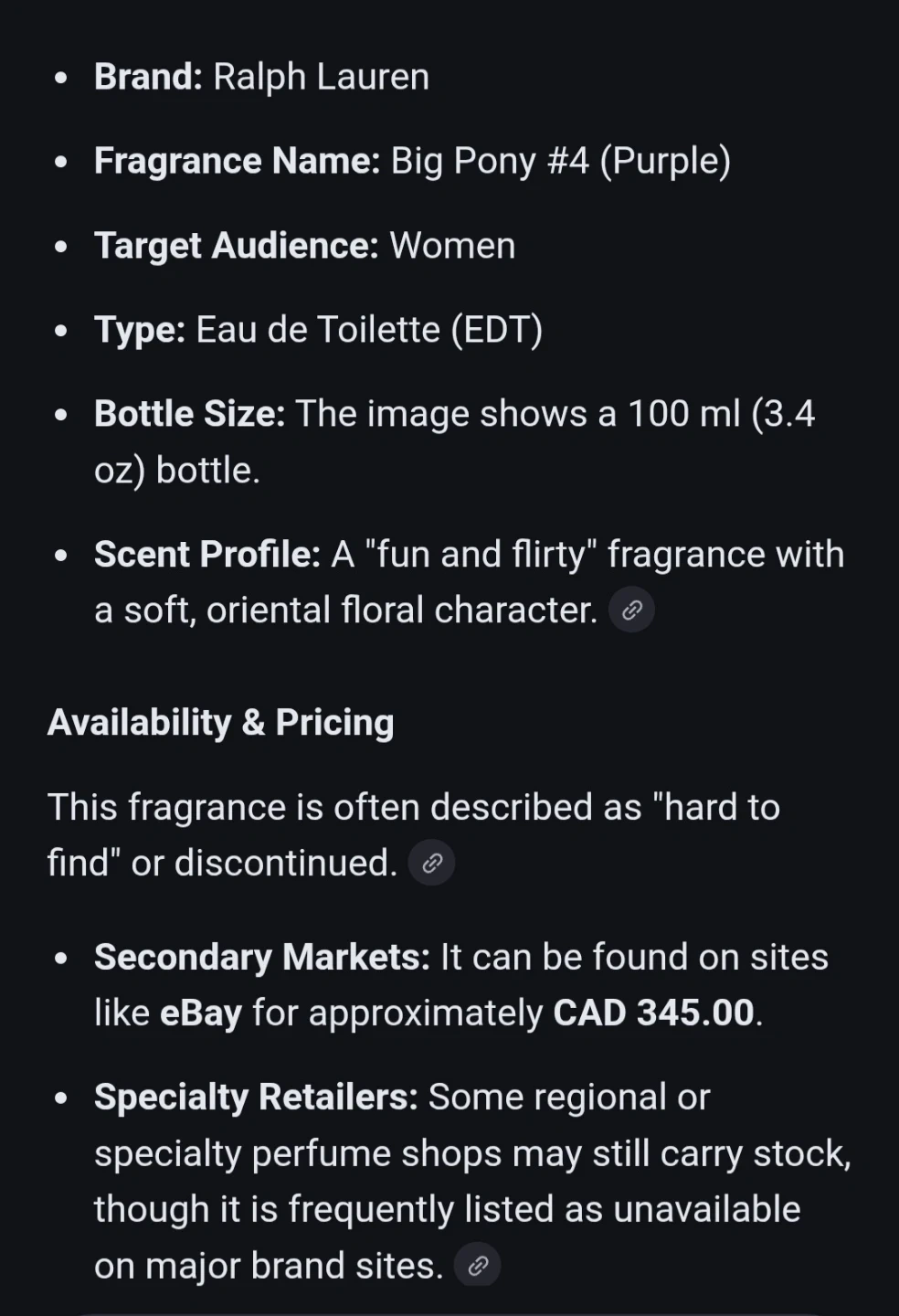 Rare Discontinued. About 95 mls left. This bottle is fresh, has been stored in a cool dark area.