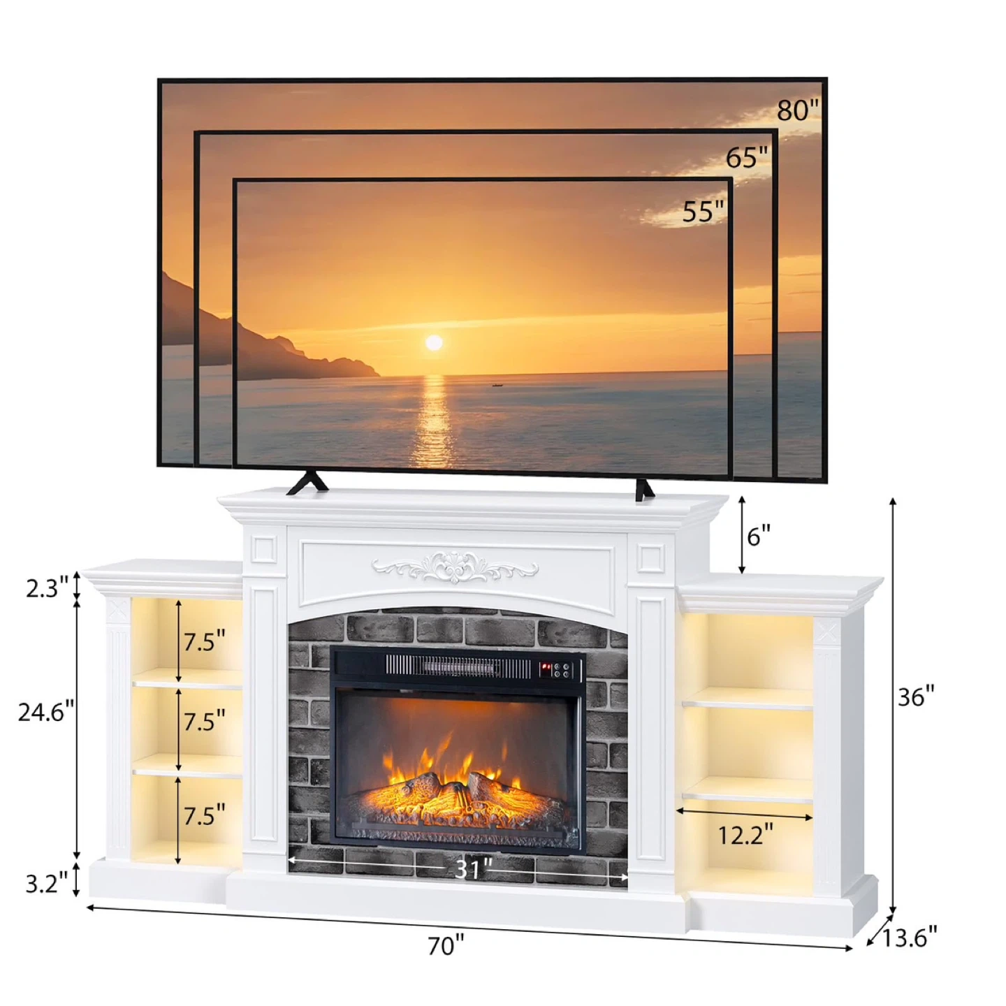 Electric Fireplace TV Stand for up to 80 inch TVs