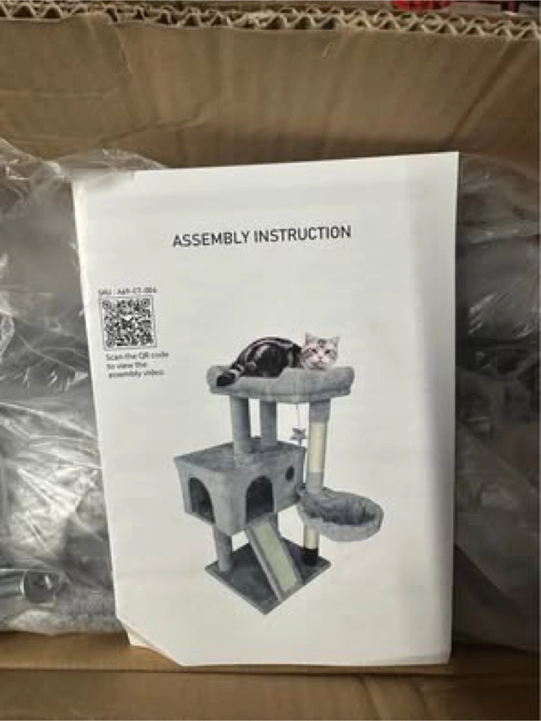 Cat Tree - 36 Inch Tower with Condo, Scratching Post & Board, Hammock, Indoor Cat Climbing Tree, Light Grey