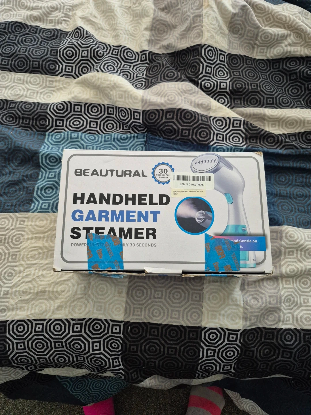 This is a BEAUTURAL handheld garment steamer. It's designed for powerful wrinkle removal in just 30 seconds. The unit comes with accessories for effective steaming.