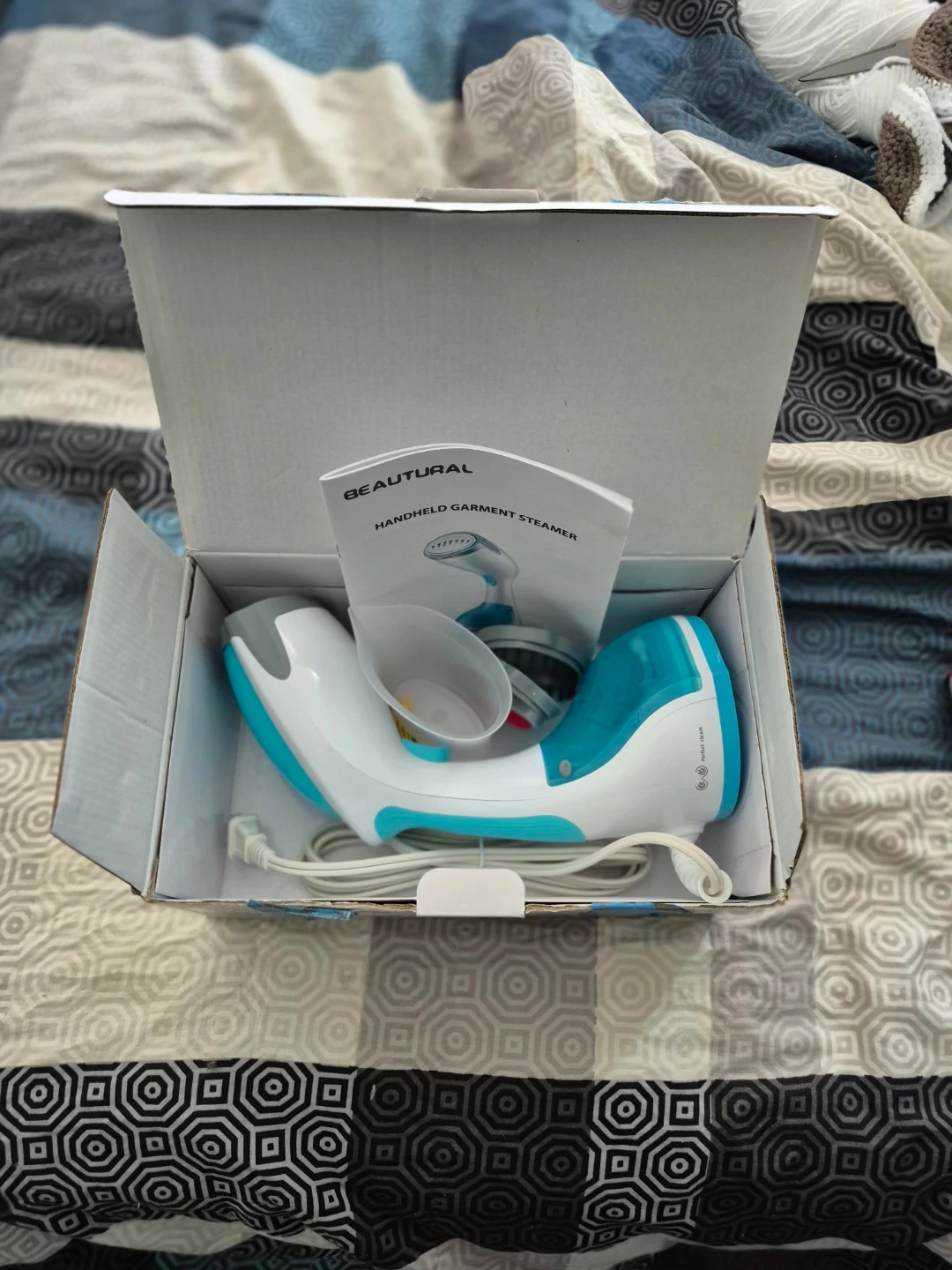 This is a BEAUTURAL handheld garment steamer. It's designed for powerful wrinkle removal in just 30 seconds. The unit comes with accessories for effective steaming.