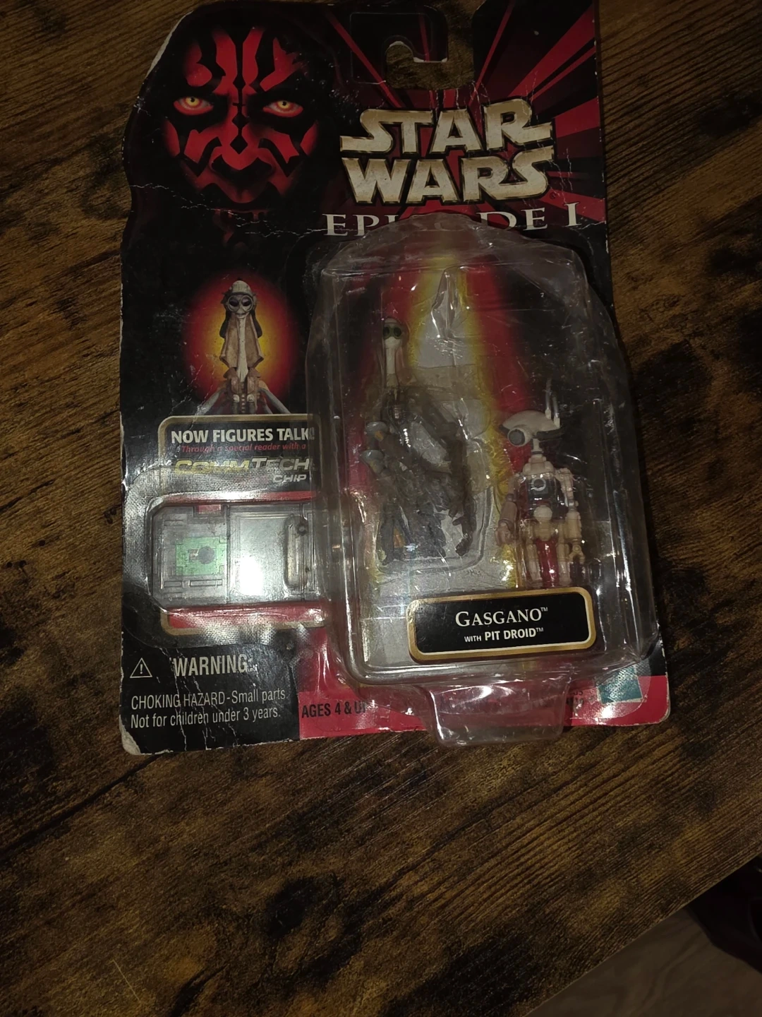 Selling a Star Wars Episode I figure of Gasgano with Pit Droid. This figure is from the Electronic CommTech Reader series. Ages 4 & Up new but package not in great condition
