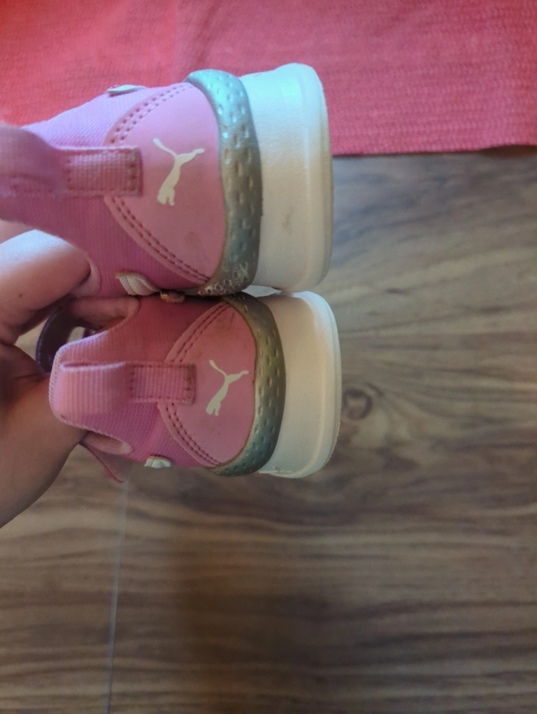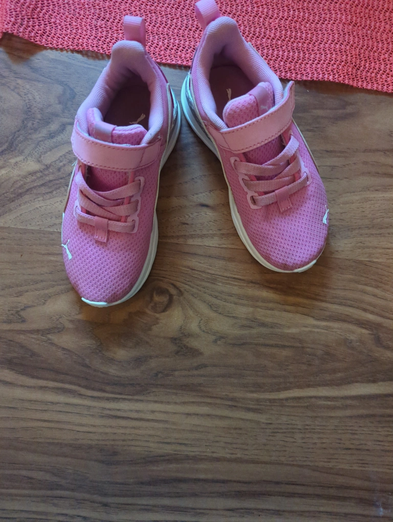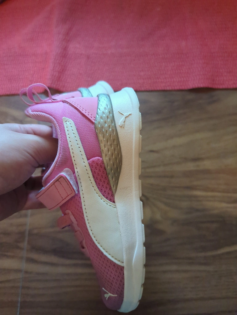 Pink running shoes with Velcro closures , memory foam inside the shoes.