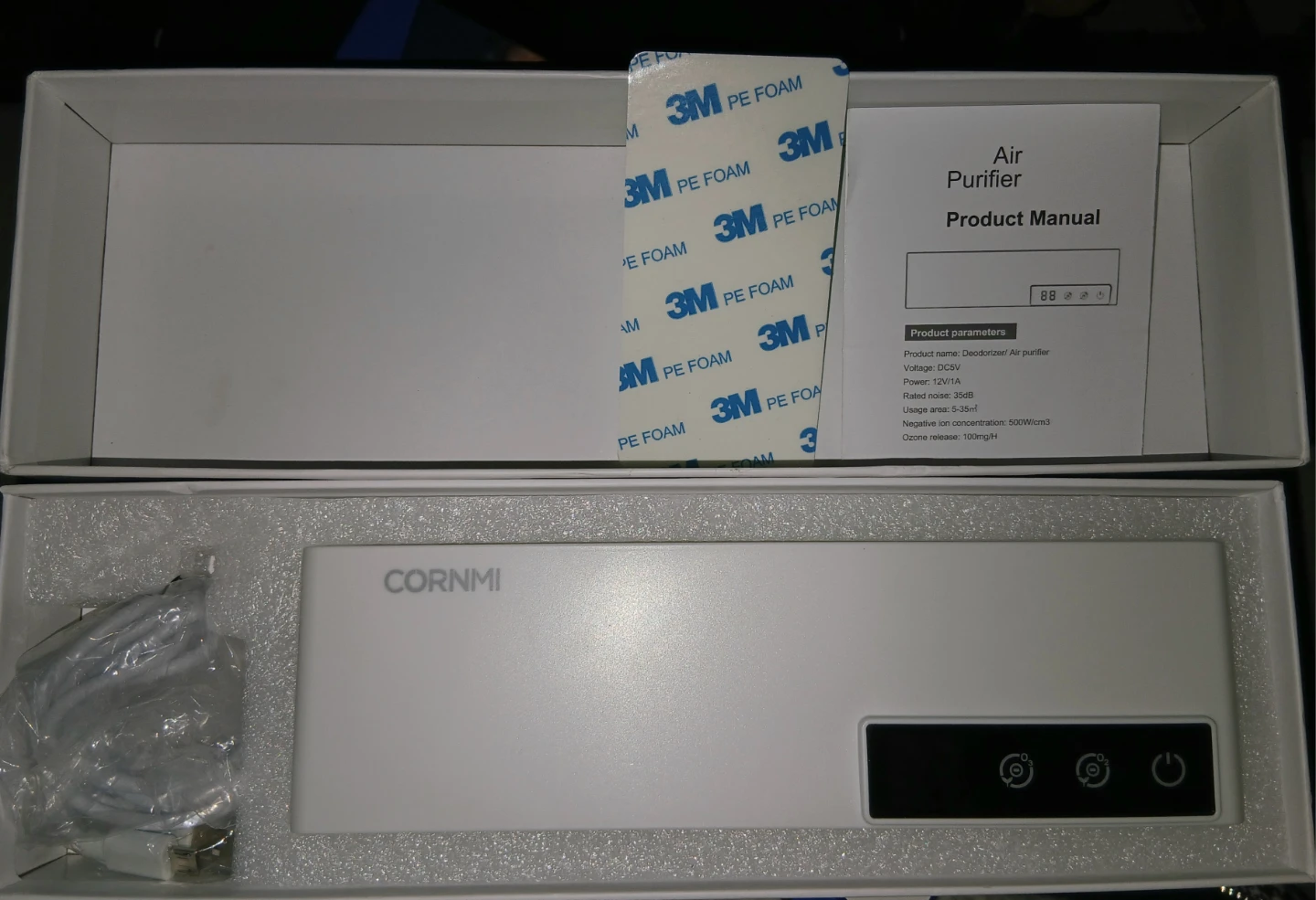 New CORNMI Air Purifier Deodorizer. Comes with manual and all accessories EXCEPT the adapter. Low noise and good for small rooms.