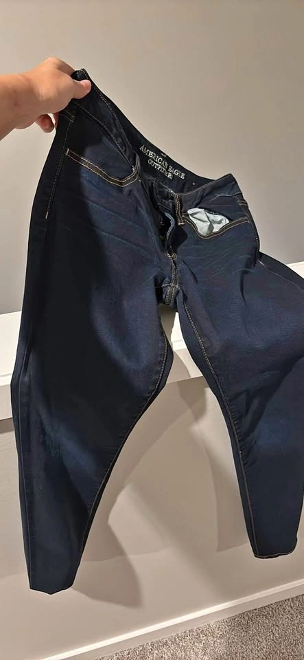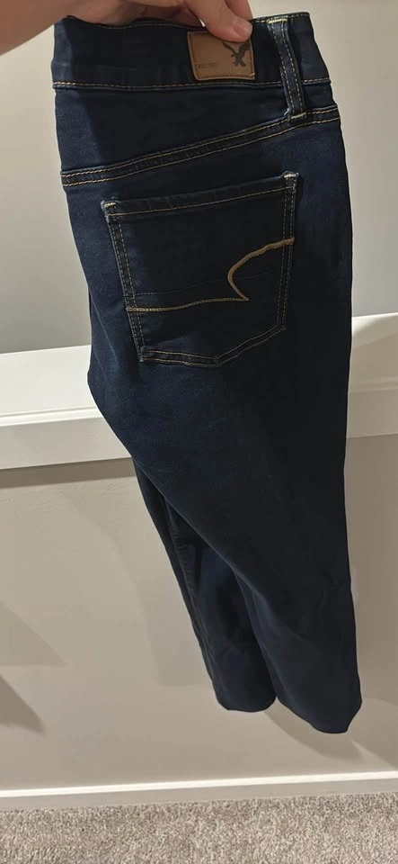 I have 2 pairs of the same American Eagle jeggings, super stretch, size 6. Available for pickup in Heirloom Green. Let me know if you're interested in both for a deal!